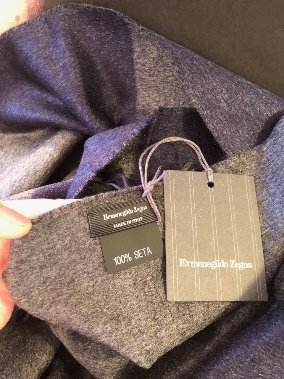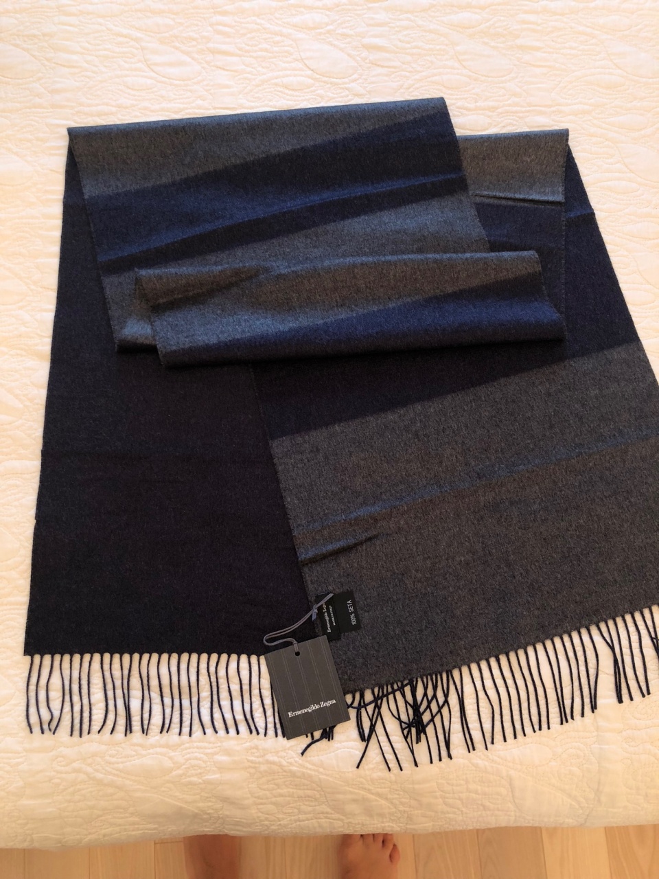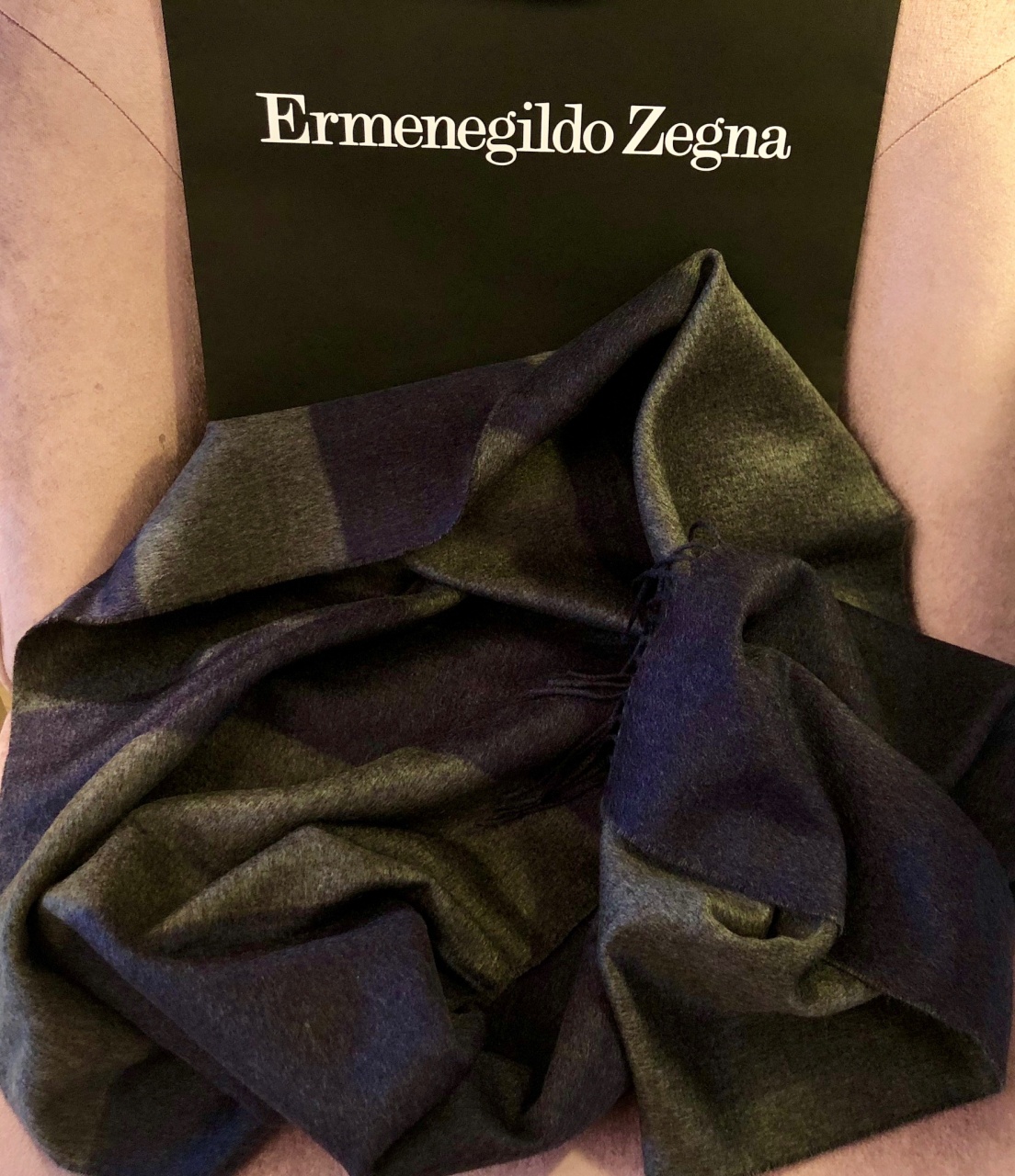 Шарф Ermenegildo Zegna Многослойный 100% теплый ШЕЛК. Темно-фиалковые и серо-синие полосы