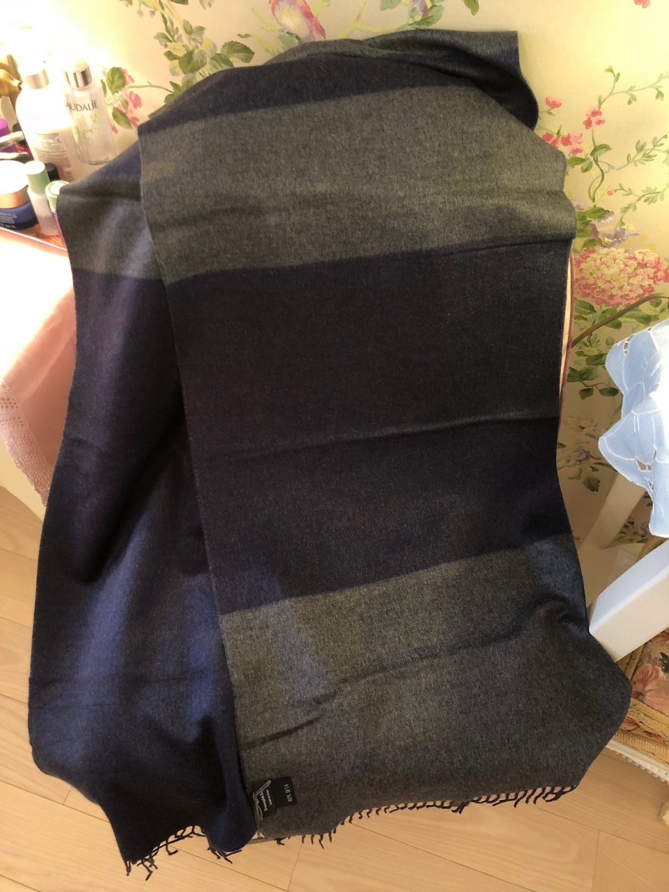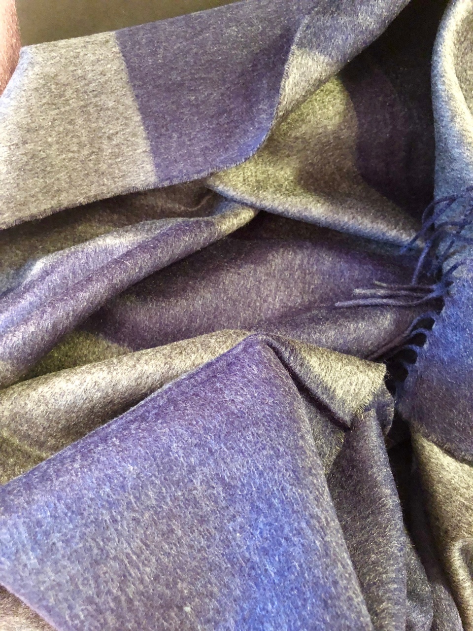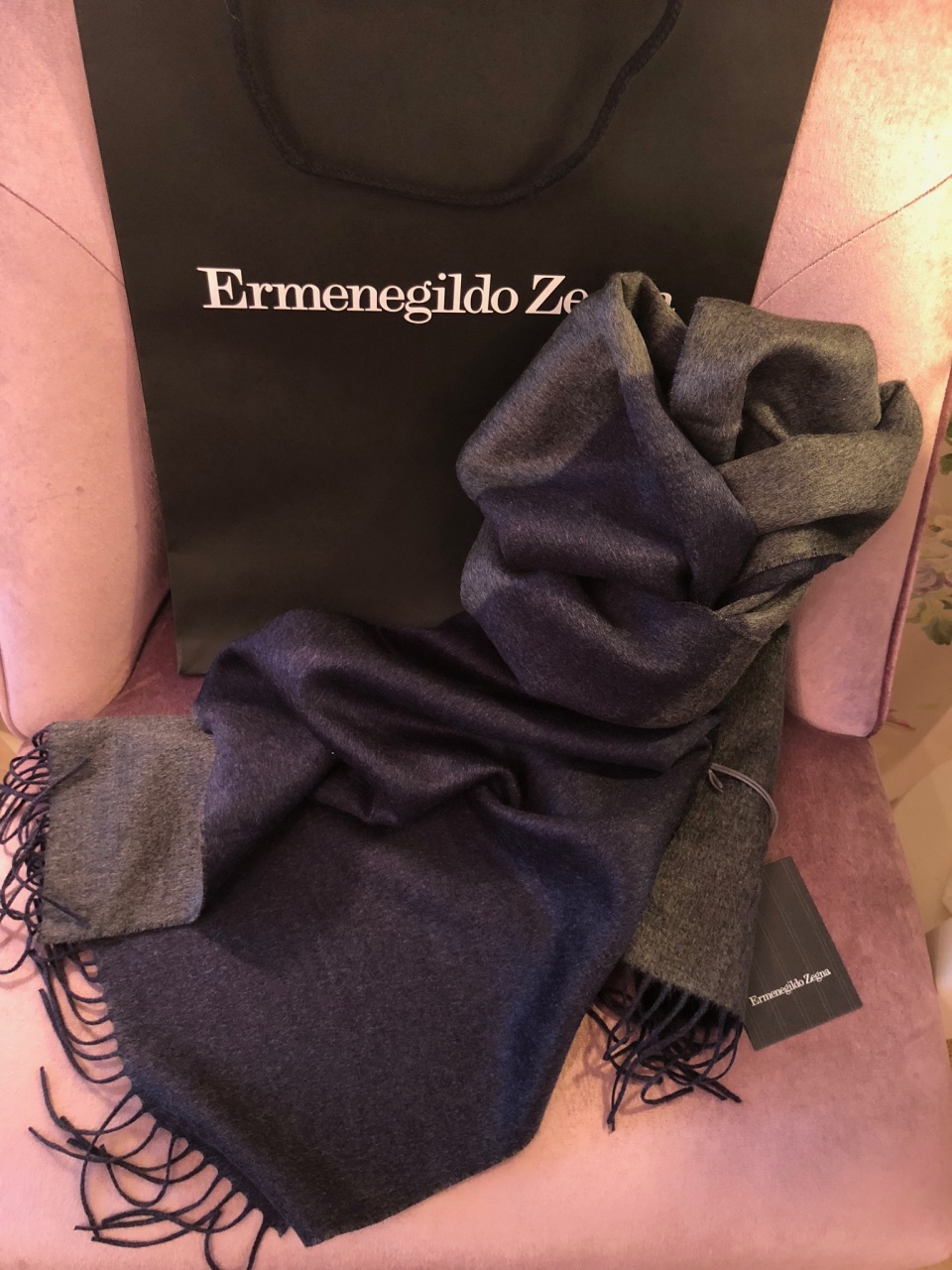 Шарф Ermenegildo Zegna Многослойный 100% теплый ШЕЛК. Темно-фиалковые и серо-синие полосы