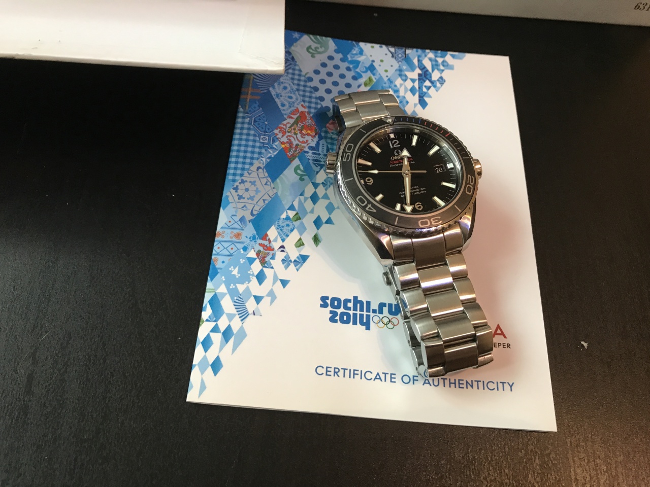 Лимитировання модель Omega planet ocean Sochi 2014, носил только по в редких случаях, часы в состоянии близко к новым, никаких полировок не проводилось. Покупал в бутике Турбийон на Петровке. Полная комплектность ( основная шкатулка, все сертификаты, мануал, транспортировочная коробка ) Calibre 8500