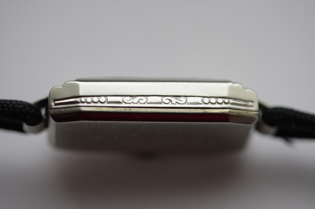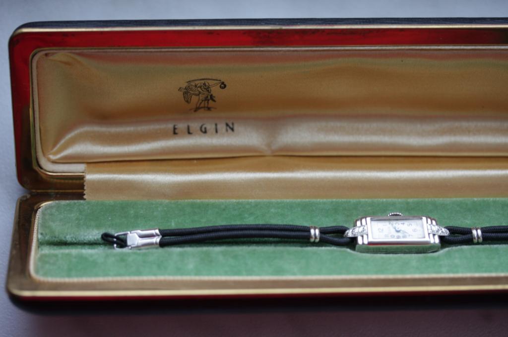 Корпус 11х29мм с тончайшим рисунком в стиле арт деко. корпус и механизм в идеальном состоянии напрессованое белое золото 14 карат. мануфактурный механизм калибр 513 на 7 камнях. Серийный номер 34997565 по базе пробивается 1933 годом. Часы в идеальной сохранности и на хорошем ходу. обслужены. В комплекте оригинальная коробка Elgin. Патина на цифере.