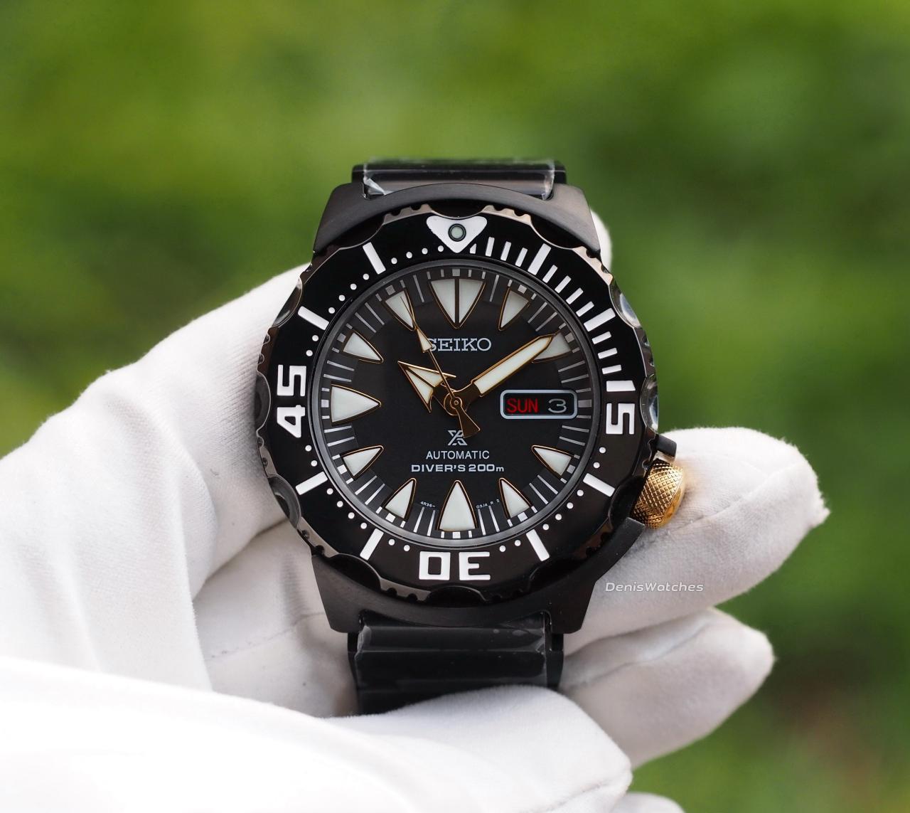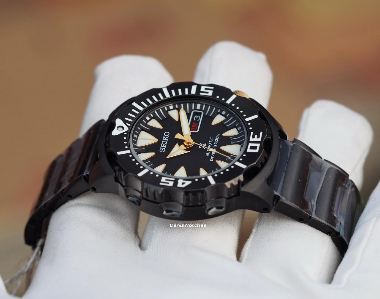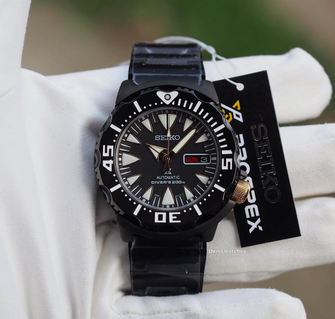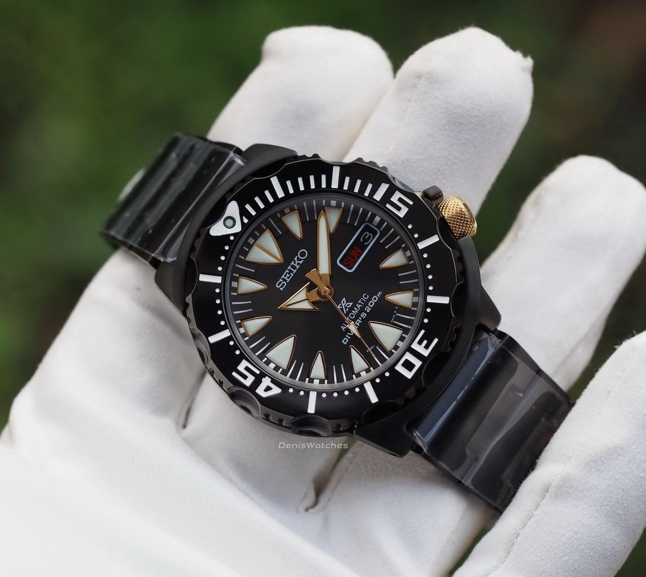Seiko-Монстр в полностью черном исполнении с золотыми стрелками и метками!