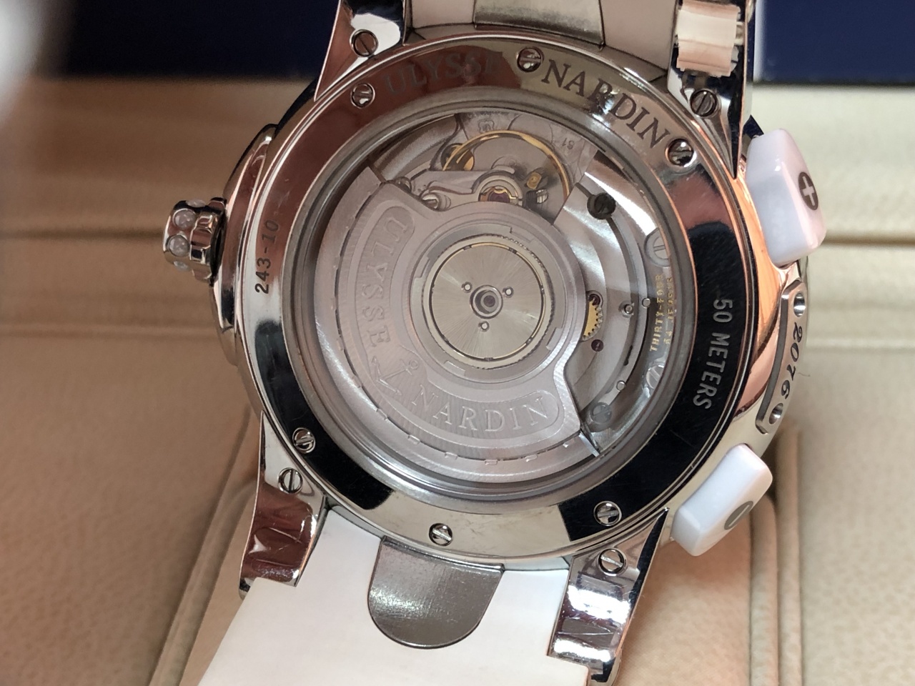 Коллекция Executive Lady представляет собой гармоничное сочетание изысканной внешней отделки, присущей женским моделям и сложного внутреннего устройства, характерного для моделей мужских. Именно такое сочетание делает коллекцию элегантной и практичной одновременно. Механизм - автоматический, Калибр UN-24 имеет запас хода 42 часа. Корпус выполнен из нержавеющей стали, размер 40мм. Безель - инкрустирован белыми бриллиантами. Циферблат - белый перламутровый, инкрустирован 88 белыми бриллиантами на корпусе и 49 на циферблате 1.734 carat. Водонепроницаемость - 50 метров. Стекло - сапфировое. Ремешок - Каучуковый, белого цвета, Раскладывающаяся застежка. Часы куплены в 2013 году, на корпусе присутствуют естественные следы носки, не полировались, ремень оригинал на руку 18см.