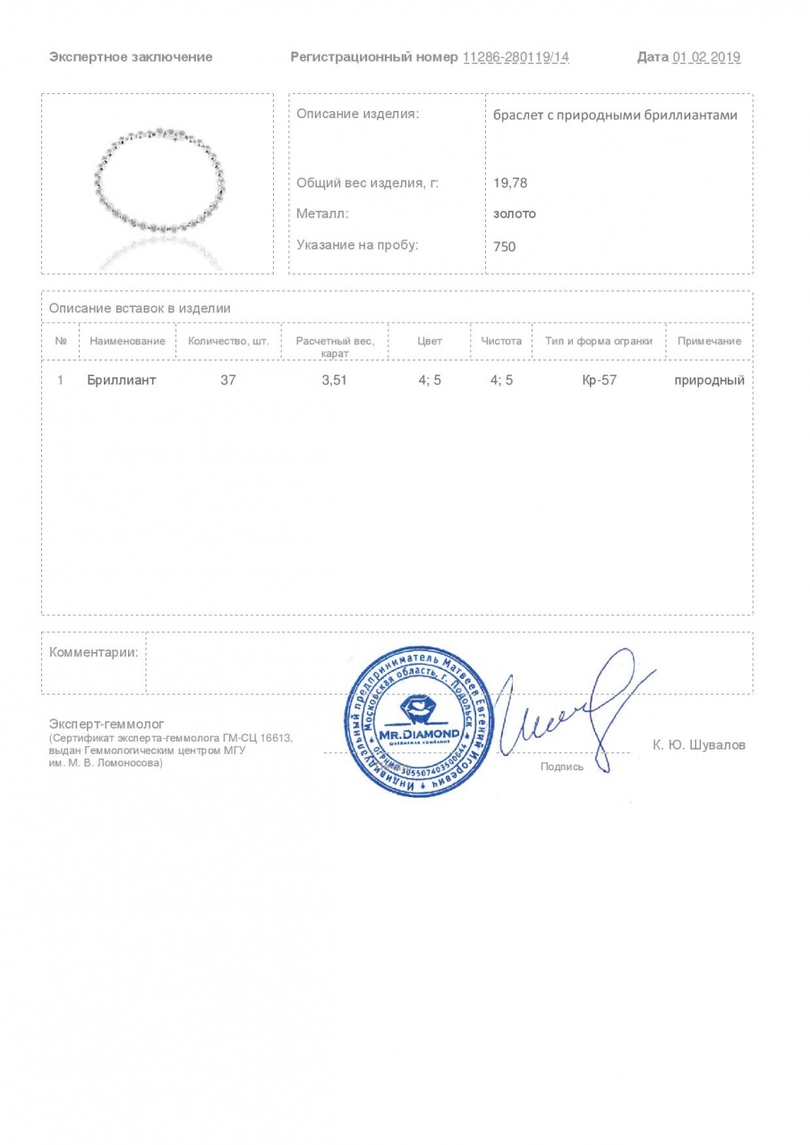 Теннисный золотой браслет с бриллиантам 3.51ct