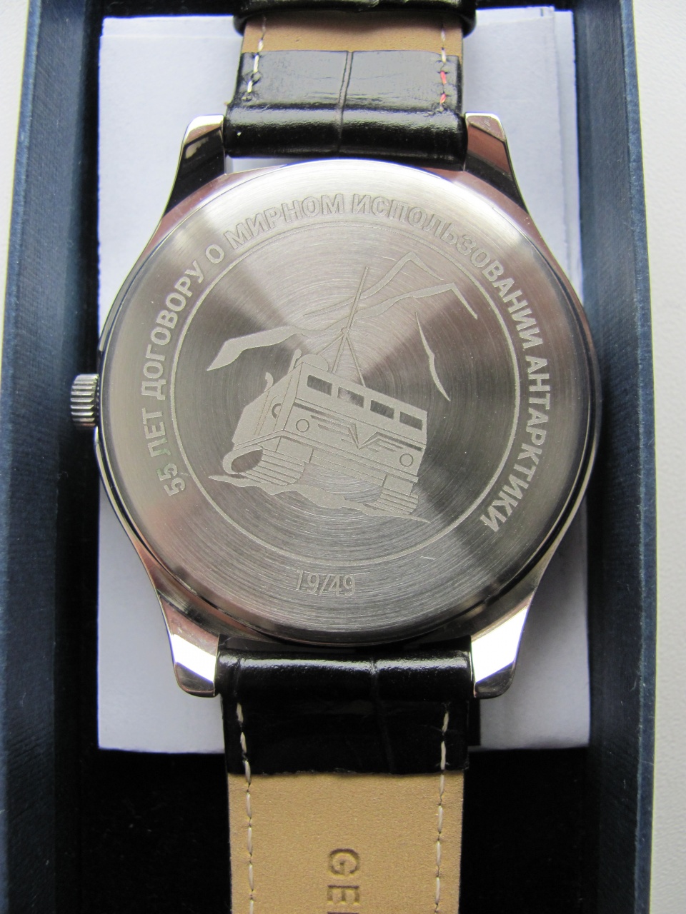Часы сделаны на Чистопольском часовом заводе «Восток» по заказу и дизайну сайта watch.ru. Ограниченная серия. Номер 19 из 49 выпущенных.