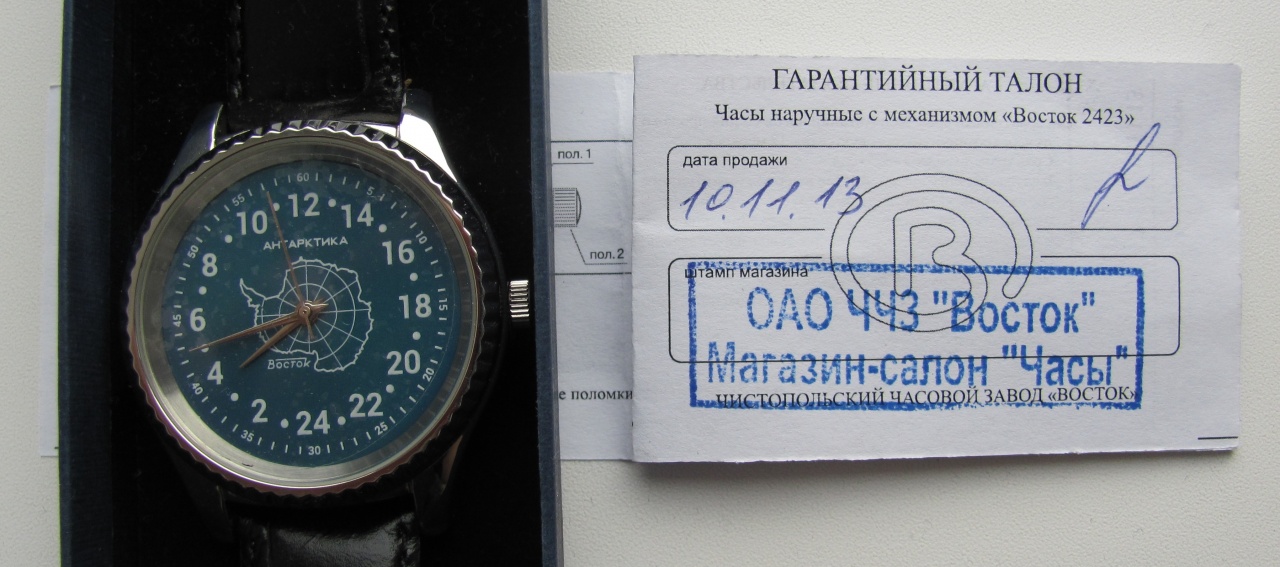 Механизм "Восток 2423" с индикацией времени в 24-х часовом формате. Центральная секундная стрелка. Противоударное устройство баланса. Влагозащищенный корпус из нержавеющей стали. Минеральное стекло. Ремень из натуральной кожи.
