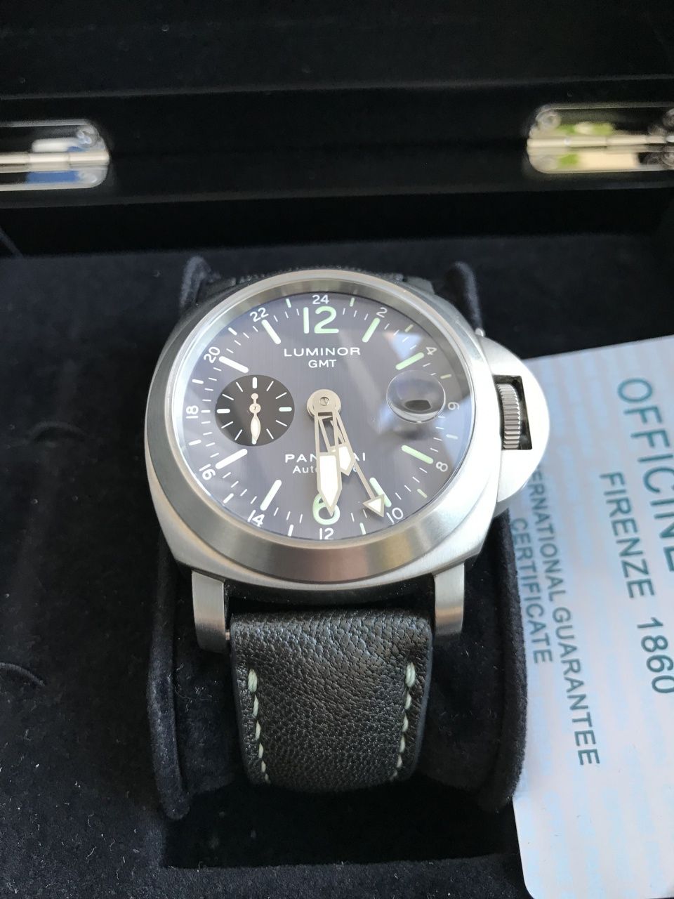 Продаю Оригинальные Швейцарские Часы Panerai Luminor GMT Titanium PAM00089, современные по дизайну, разработаны компанией Officine Panerai и адресованы истинным ценителям часового искусства. Модель является образцом неповторимого и изысканного стиля. Эти часы не только выполняют лишь функцию определения текущего времени, но оснащены индикатором второго часового пояса.