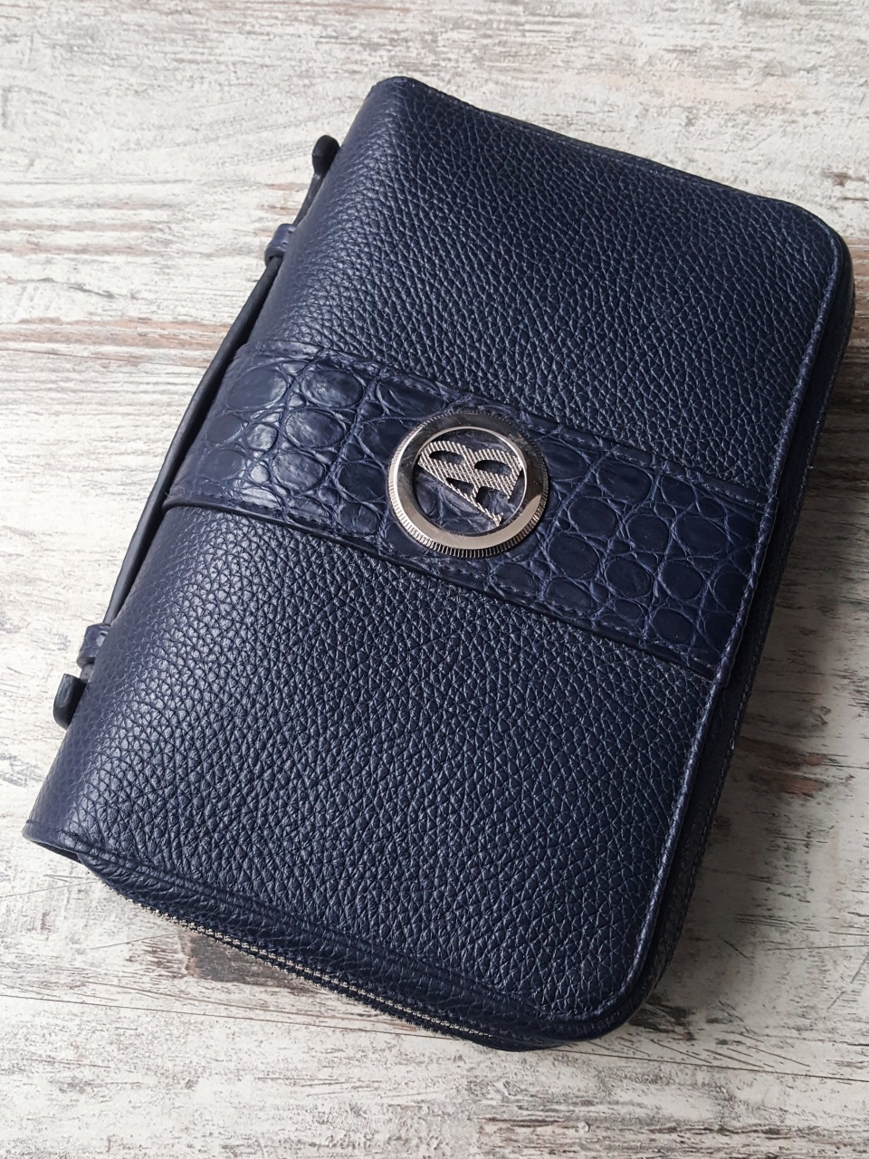 Декоративная вставка и ручка клатча «портфельного типа» изготовлена из 100% кожи нильского крокодила высочайшего качества выделки.