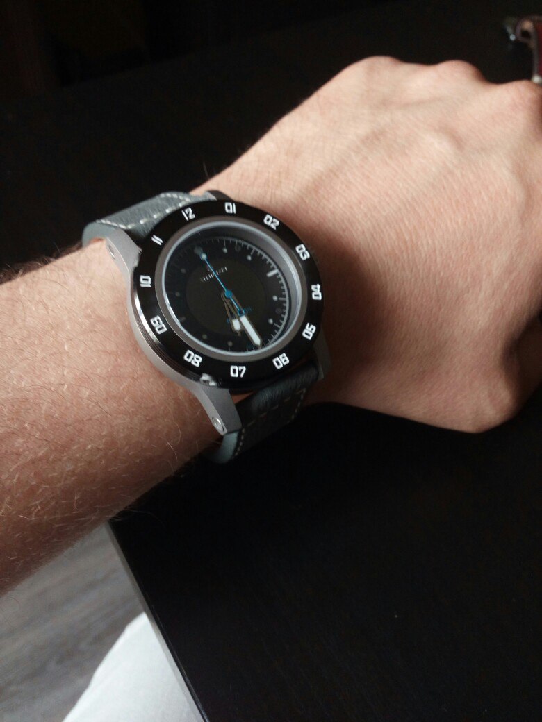 На вид, комплектный ремень серого цвета - презентабельный. Косяков не обнаружено. Но: Кожа нежная, ворс очень мягкий, не располагает к длительному ношению и явно подвержен засаливанию. Обратная сторона ремня из очень тонкой кожи, думаю, прейдет в негодность тоже скоро. Штрипки на ремне тонкие, подвержены растяжению. Первая у пряжки без окантовки и сильно тянется, вторая с окантовкой и чуть покрепче. Хотя, наверное, это все таки мои придирки, после кастомных «дубовых» ремней из толстой кожи. Так что заказ кастомных ремней уже в процессе. Так же заказал еще оригинальный титановый браслет.