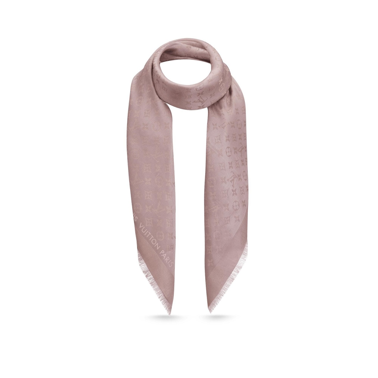 "Роскошная шаль Monogram, воплощение изящества и женственности, укутает теплом и комфортом, и станет незаменимым аксессуаром на каждый день. Невероятно мягкая и теплая, шаль украшена рисунком Monogram тон-в-тон. Изысканная шаль Shine с монохромным плетением узора Monogram слегка переливается благодаря вплетению в ткань блестящей нити."