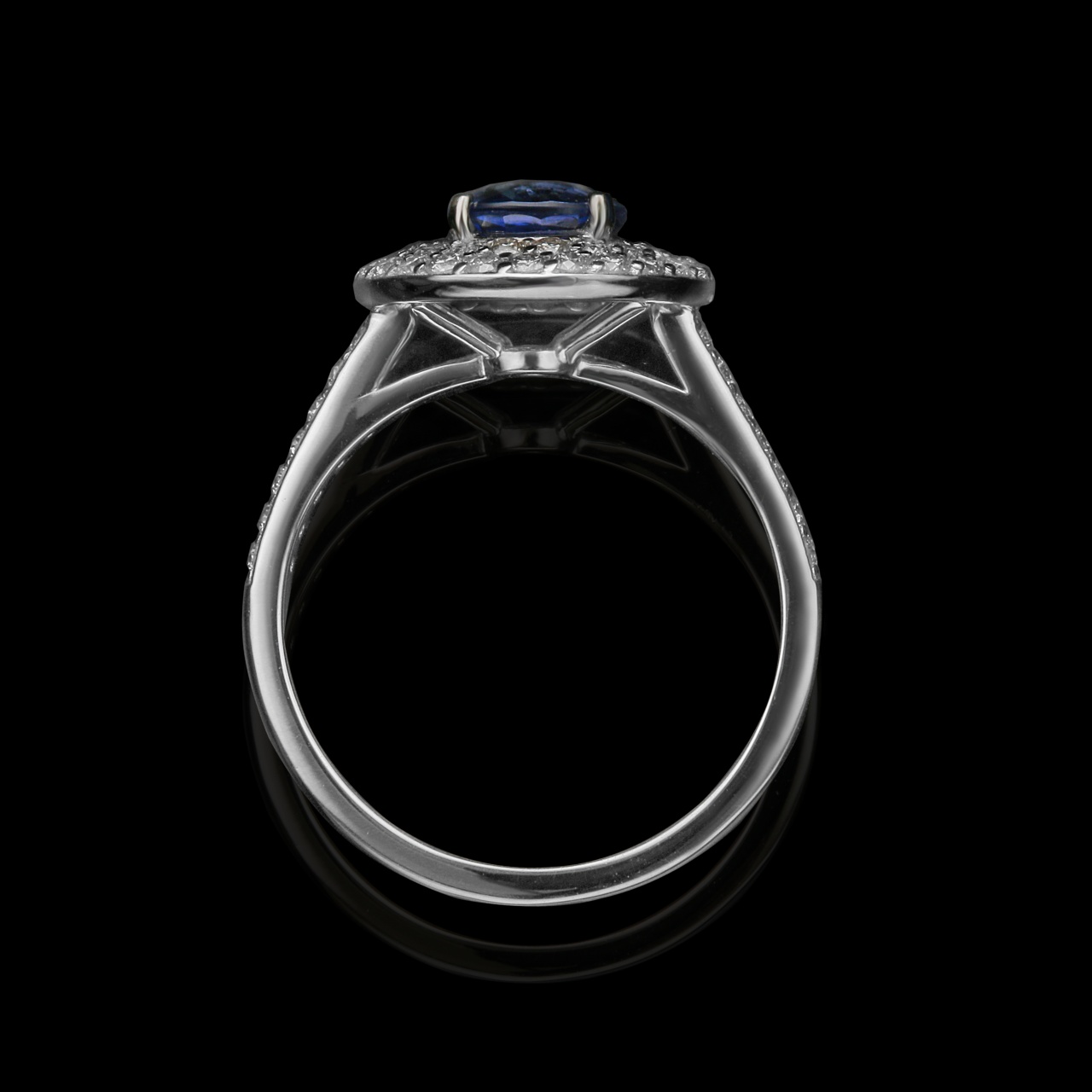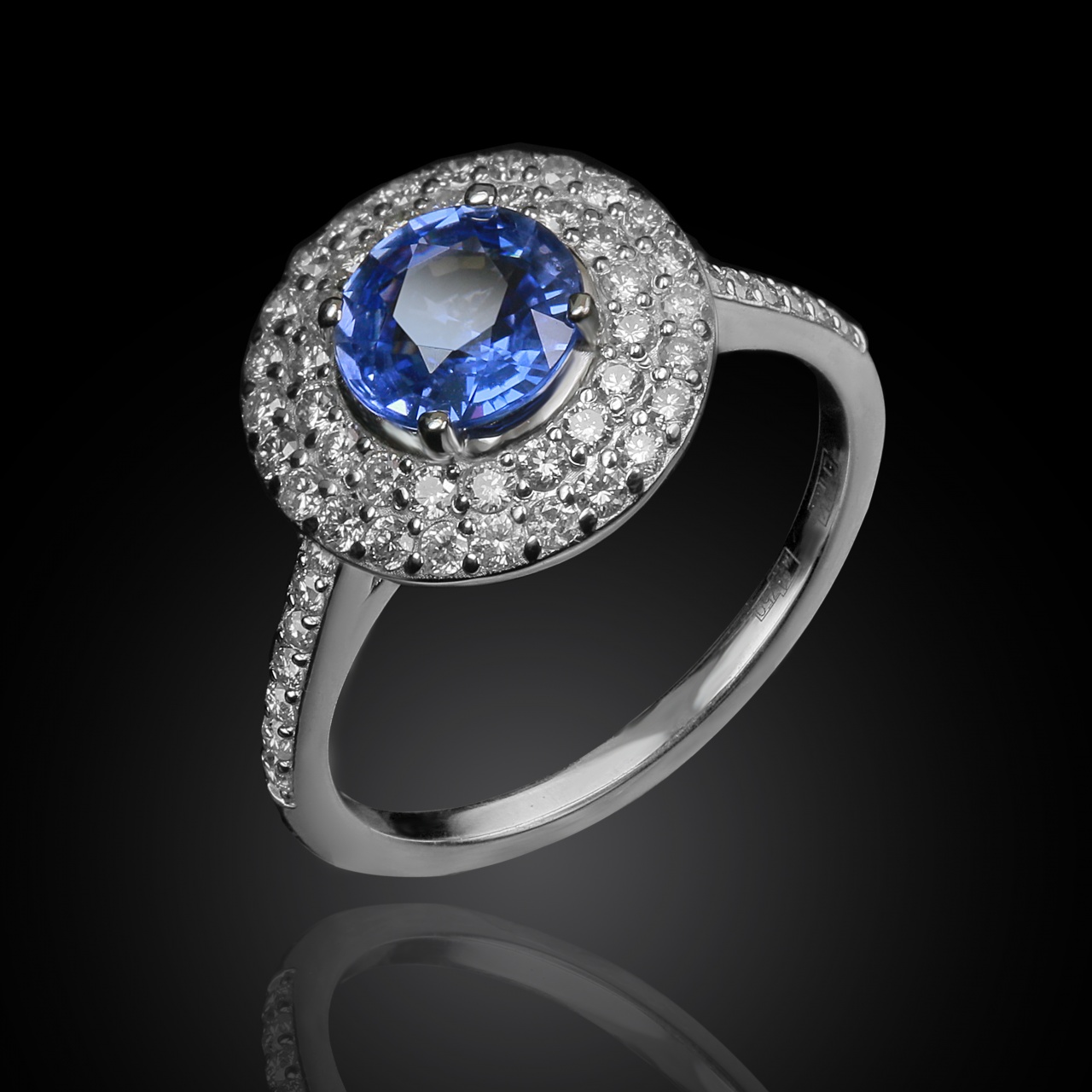 Кольцо из белого золота с сапфиром 1,13 карат и бриллиантами 0,5 карат