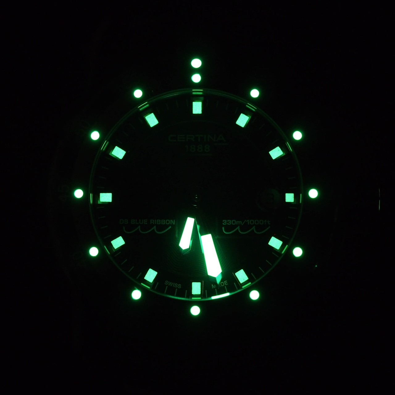 Зеленый люм на стрелках, метках и на безеле