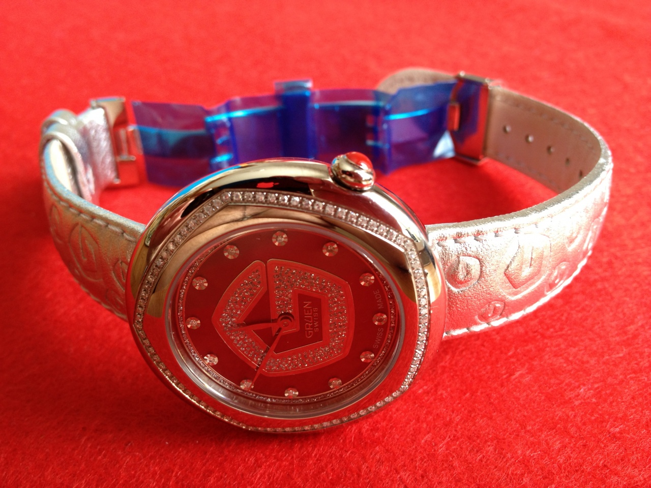 часы женские Gruen Diamond Red, 97 бриллиантов, 2 ремешка, новые в полном комплекте