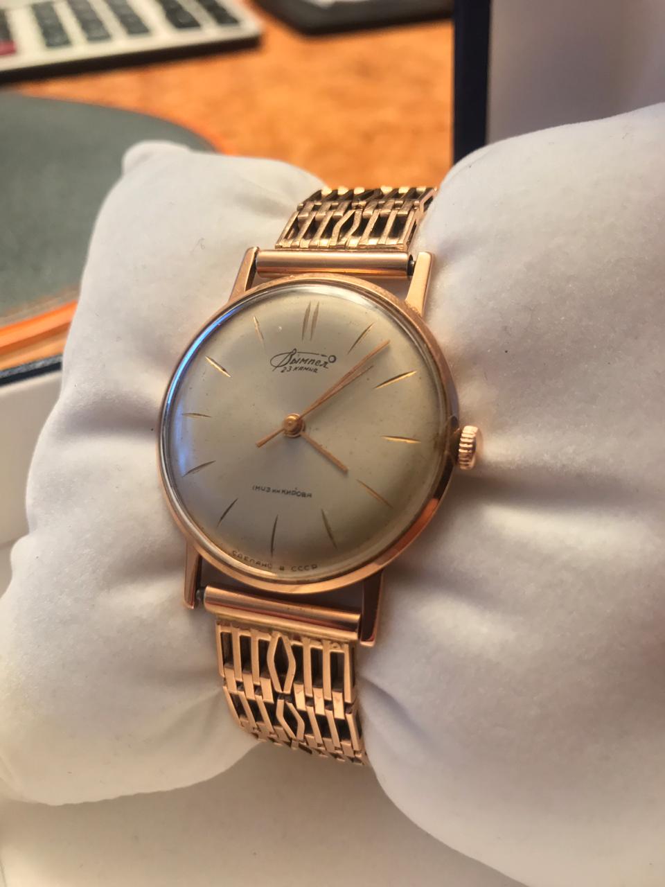 Часы золотые Вымпел 23 Камня. МЧЗ им. Кирова. Сделано в СССР. Прошу дать оценку возможной стоимости