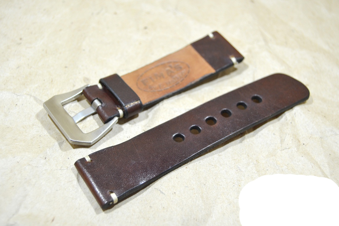 1. Коричневый, из премиальной лошадиной кожи Avancorpo. Кожа растительного дубления, очень красивая, фото к сожалению не отображает ее красоту... Ремешок не толстый. Лошадиная кожа это конечно же определенный шик, да и носятся такие ремешки дольше.