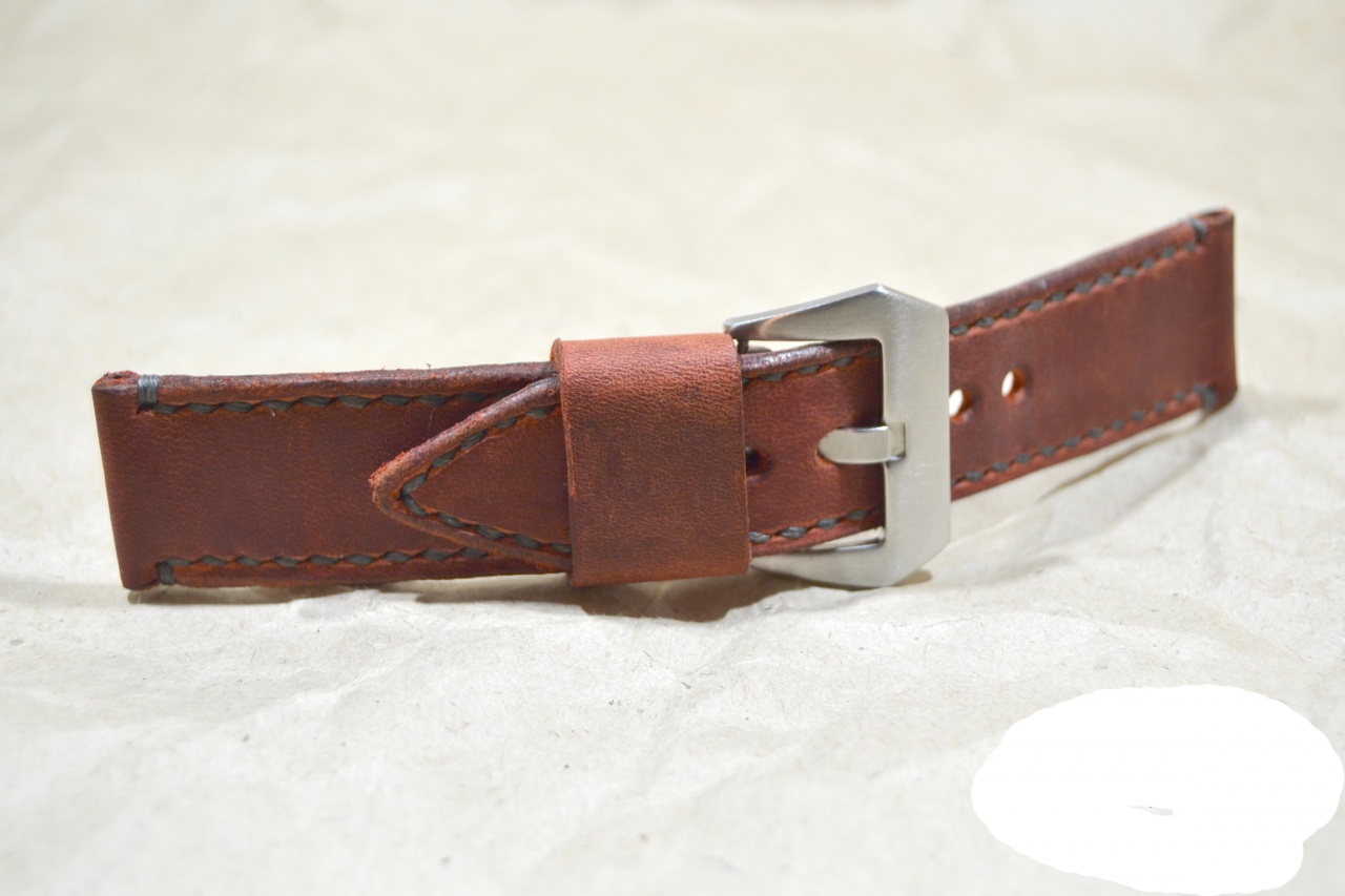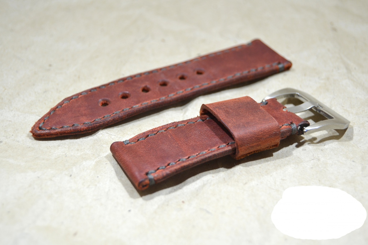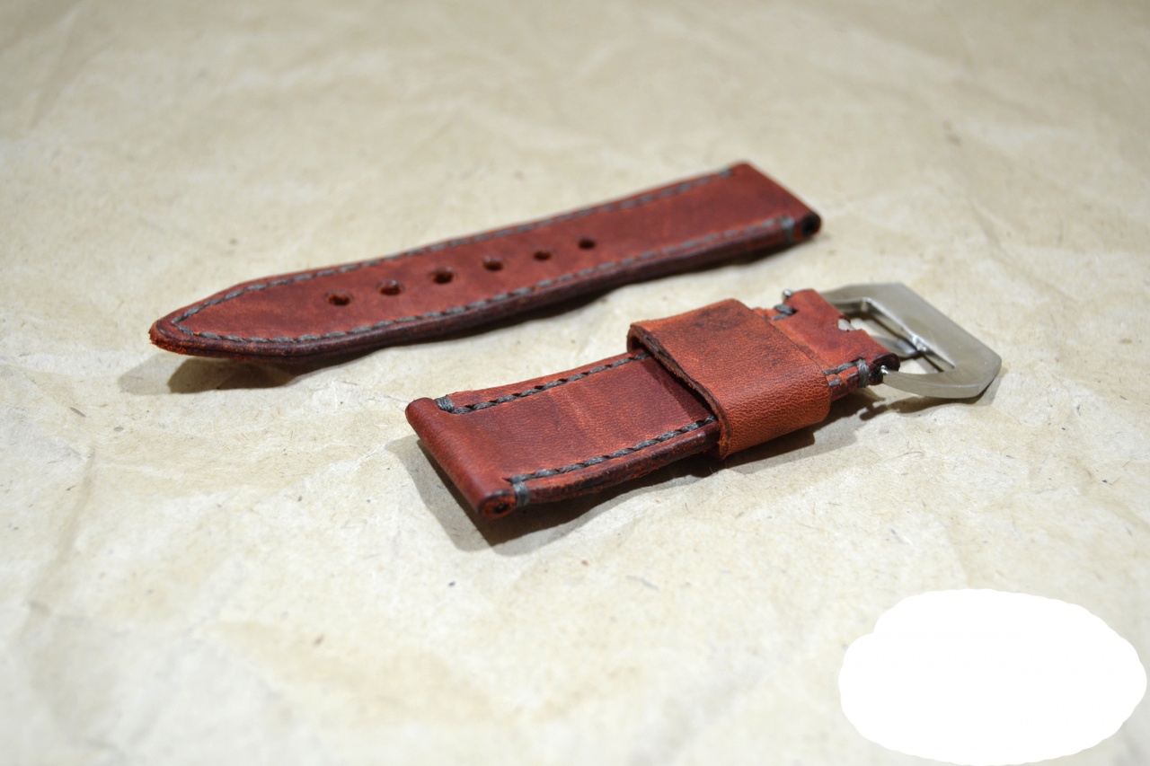 2. Ремешок кирпичного цвета, из кожи Crazy Horse. Ремешок толстый, при этом очень мягкий. Часы на таком ремешке очень комфортно носить.