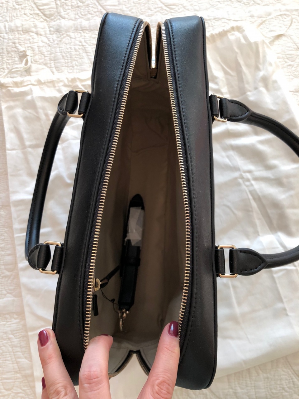 Новая коллекция, сезон 18\19гг. Черная кожа плотной гладкой выделки, две удобные ручки и длинный ремень (отстегивается, регулируется). Оптимальные размеры - 35х28х10 см - для любого по размерам ноутбука, бумаг, документов А4, портмоне, зонта, женских мелочей.