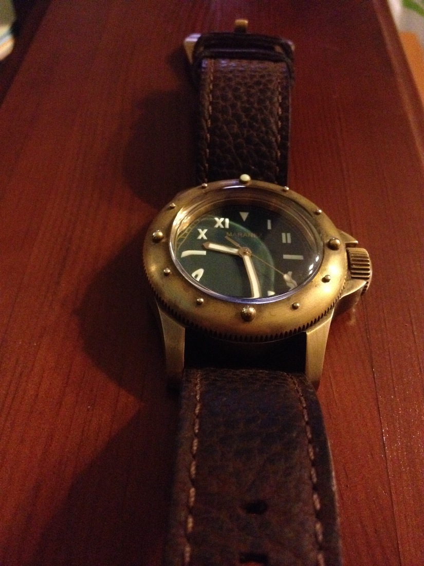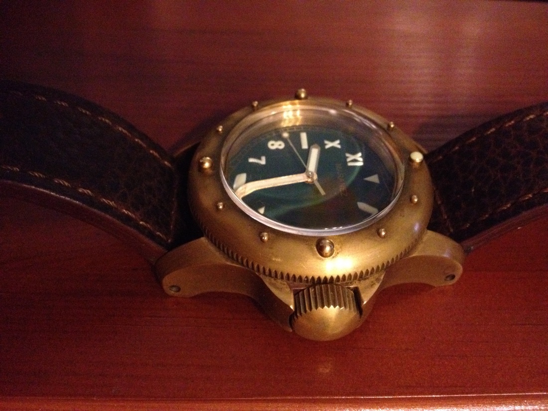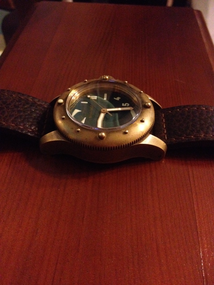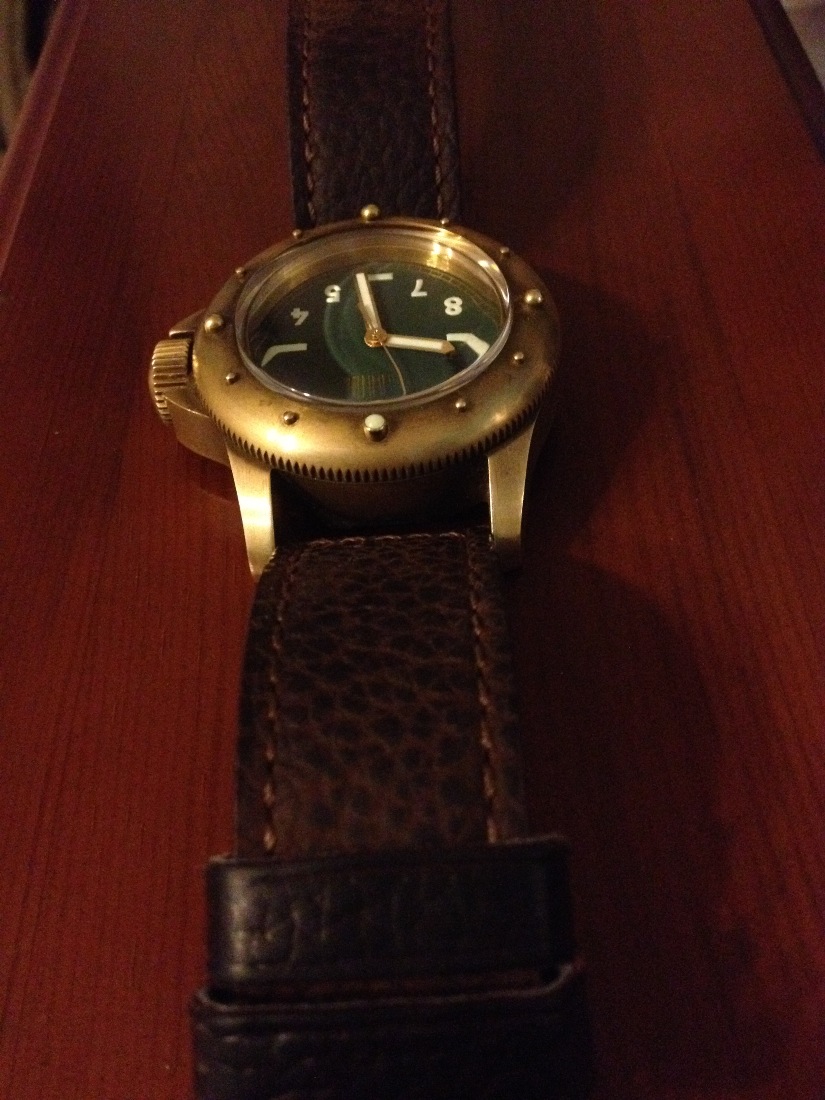Тяжелый, большой дайвер. 300м, циферблат зеленый, разметка - Калифорния. Диаметр 45 мм. Стеколо - сферический толстый акрил.