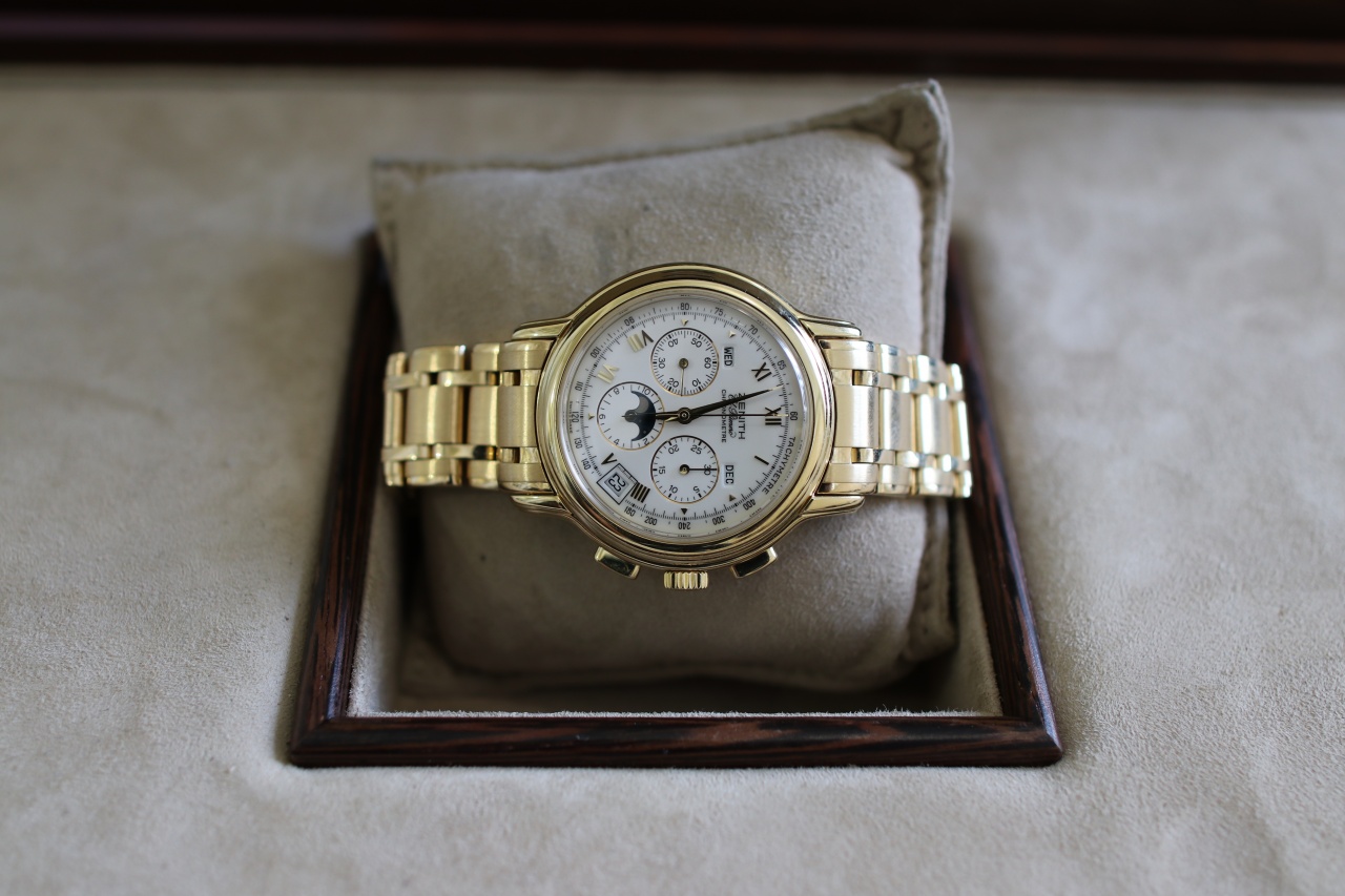 Прекрасный Zenith Chronomaster с годовым календарем! Браслет длинный около 21.5 см! Ход в порядке , все функции исправны! Общий вес 190 грамм!