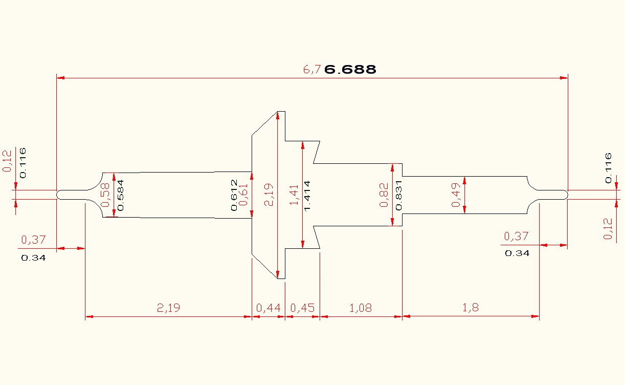 Размеры оси баланса секундомера 2МЧЗ, калибр С-11-1б