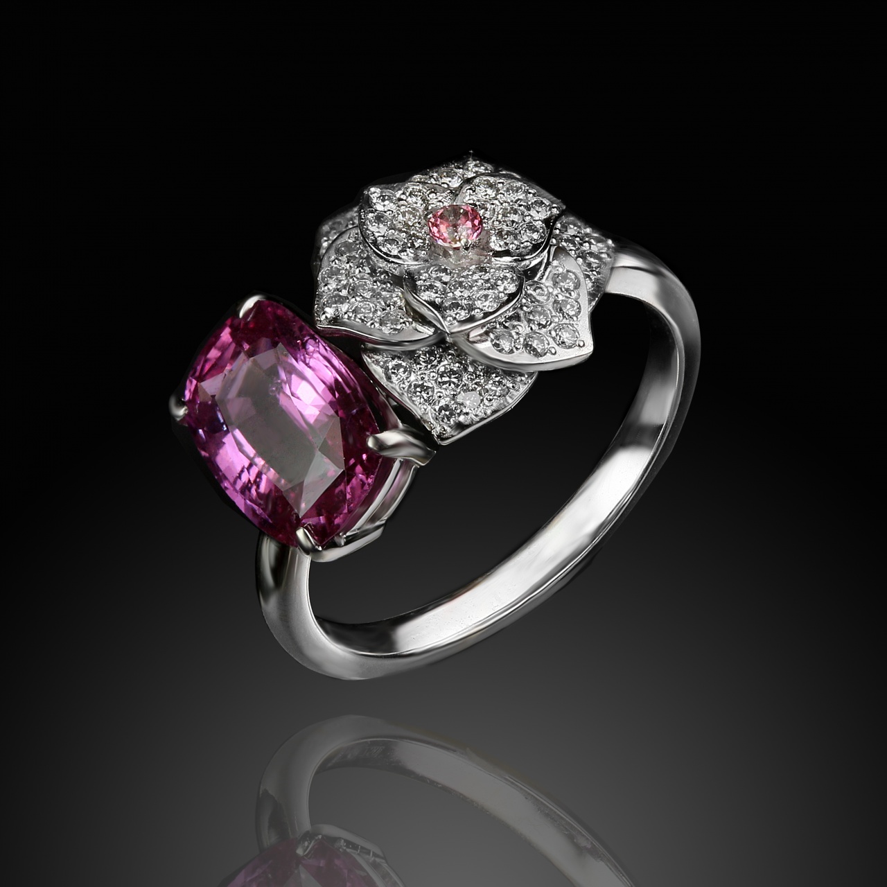 Кольцо из белого золота с розовым сапфиром 2,45 карат и бриллиантами 0,35 карат.