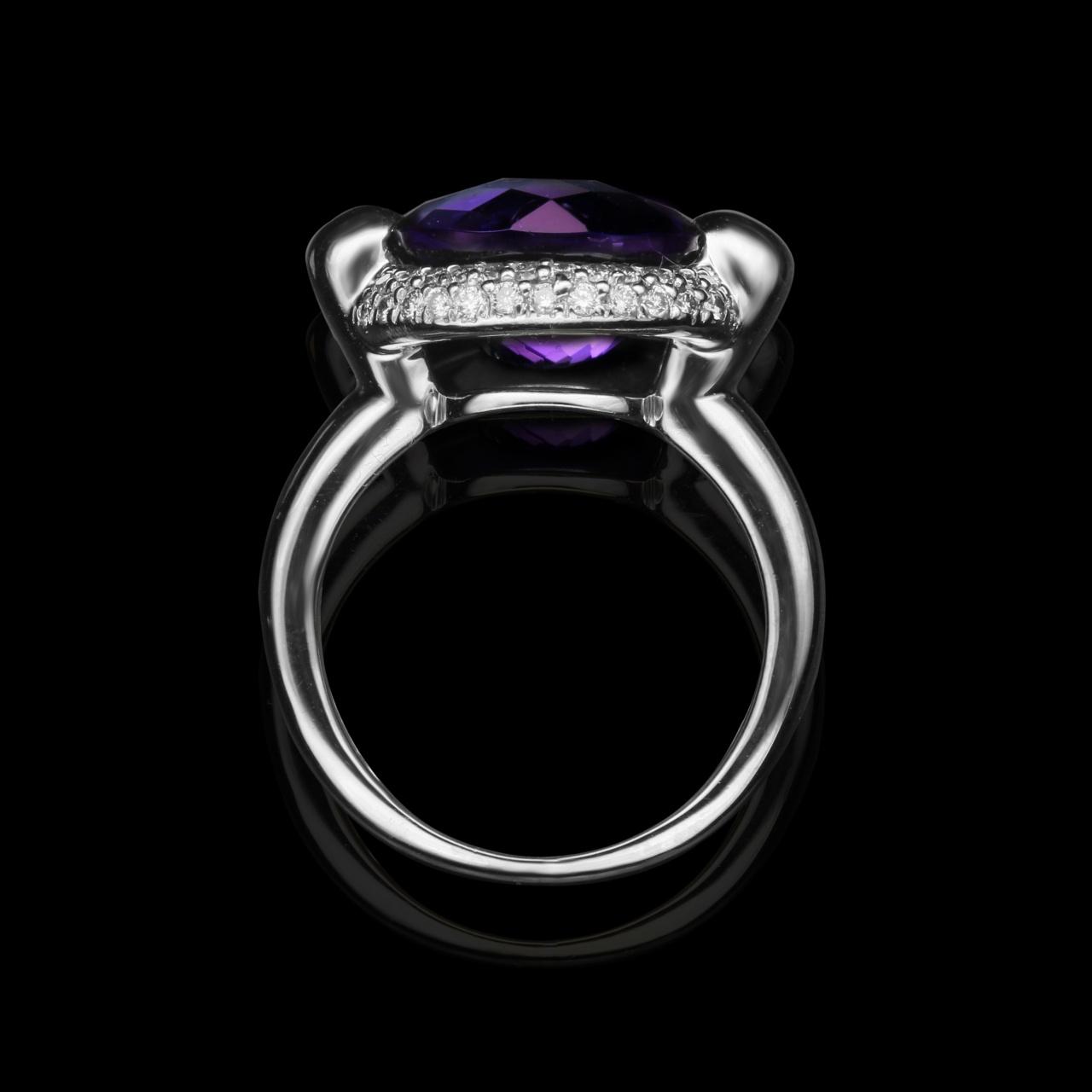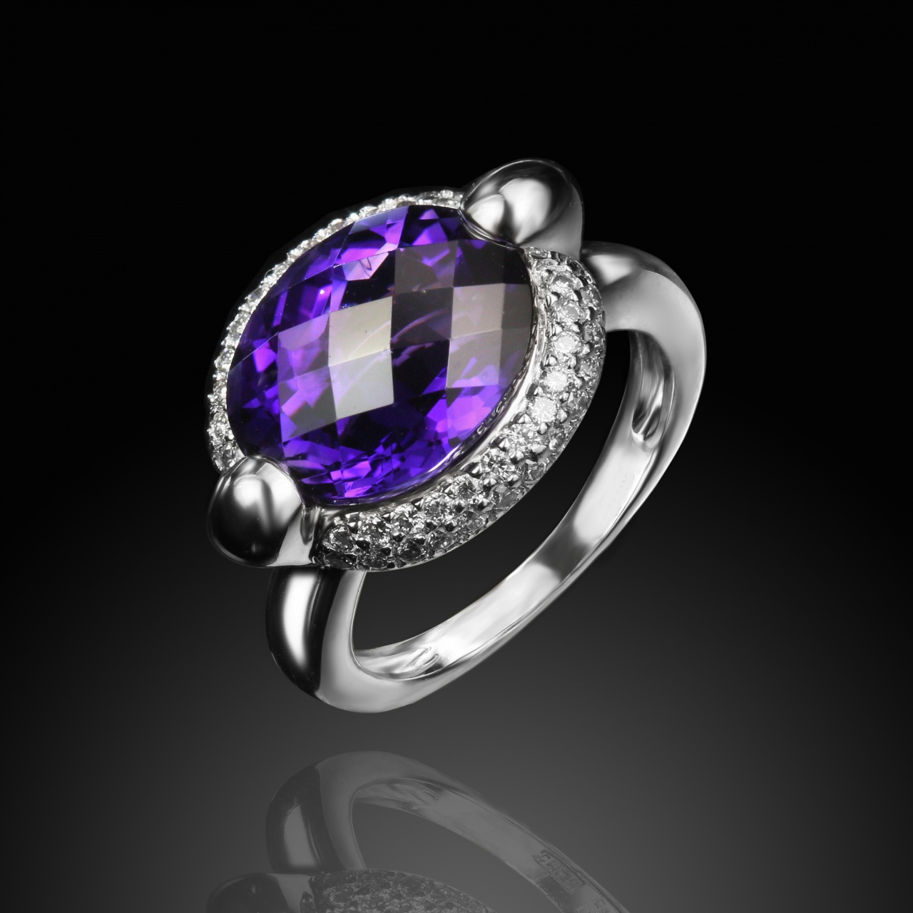 Кольцо из белого золота с аметистом 5 карат и бриллиантами 0,3 карат