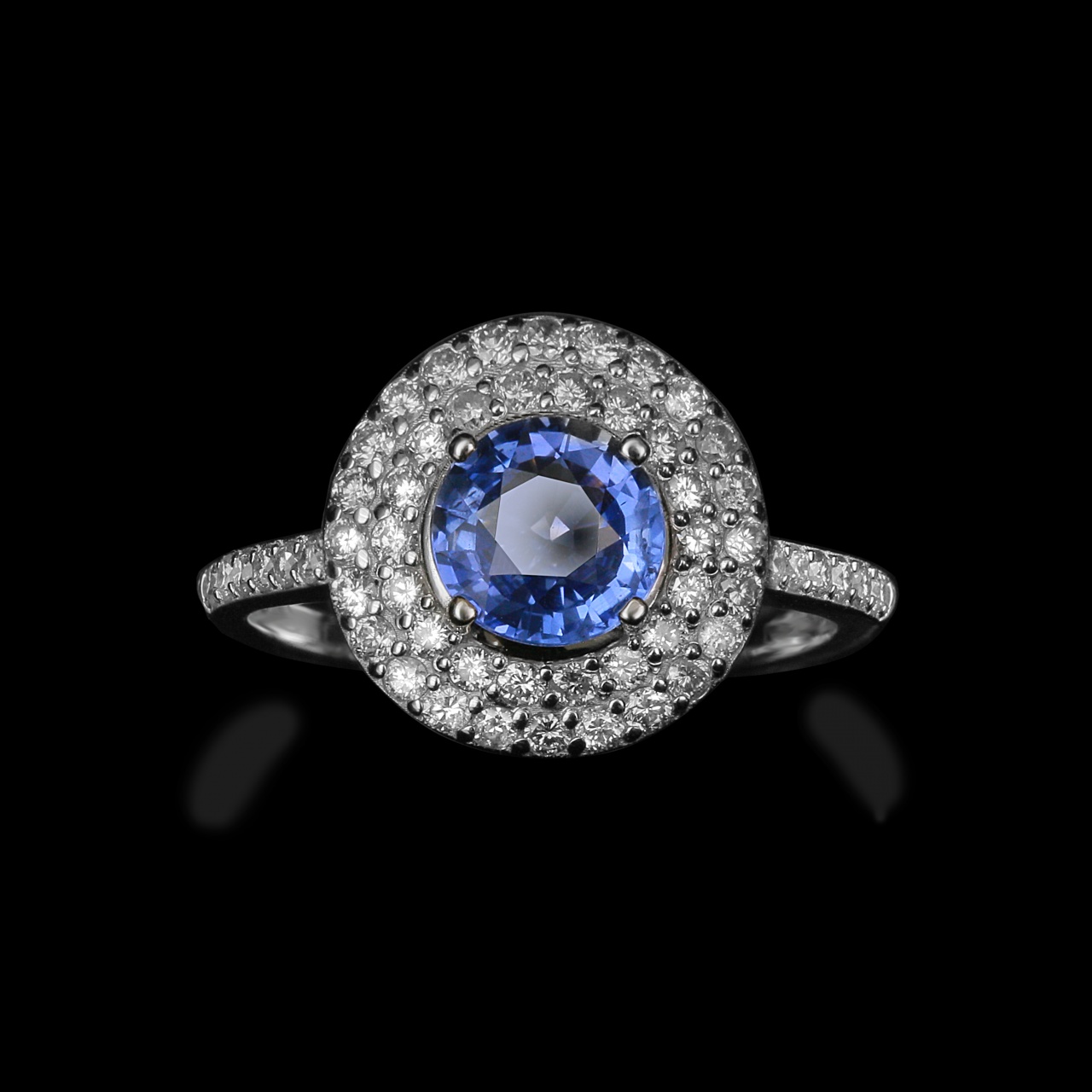 Кольцо из белого золота с сапфиром 1,13 карат и бриллиантами 0,5 карат