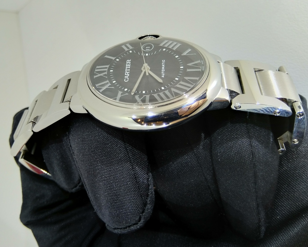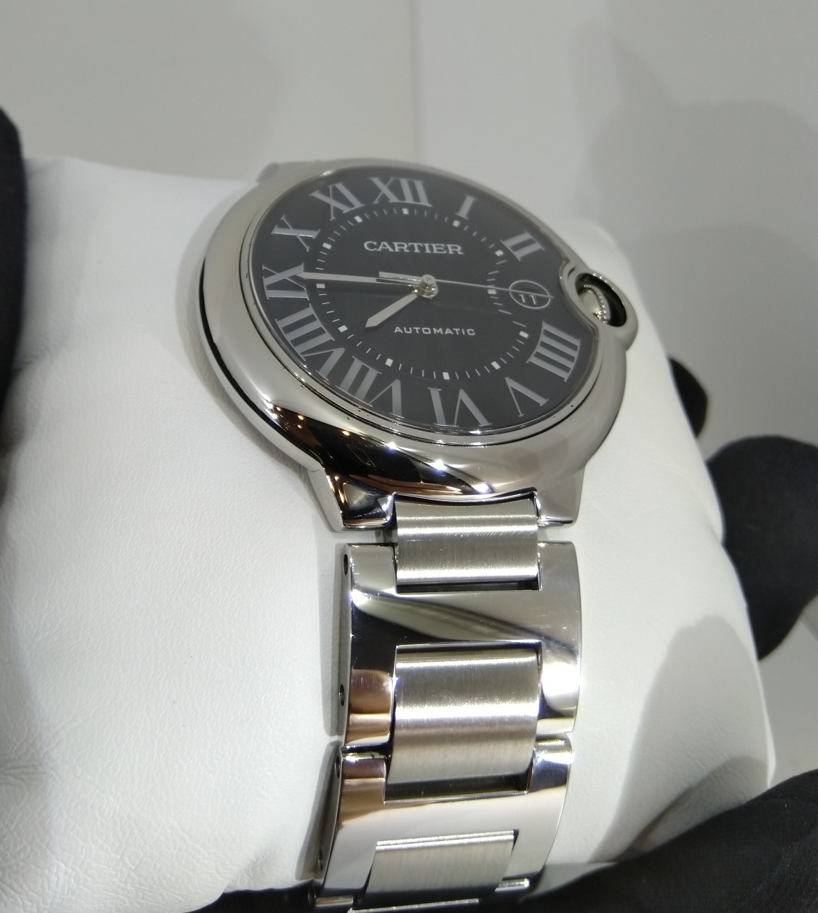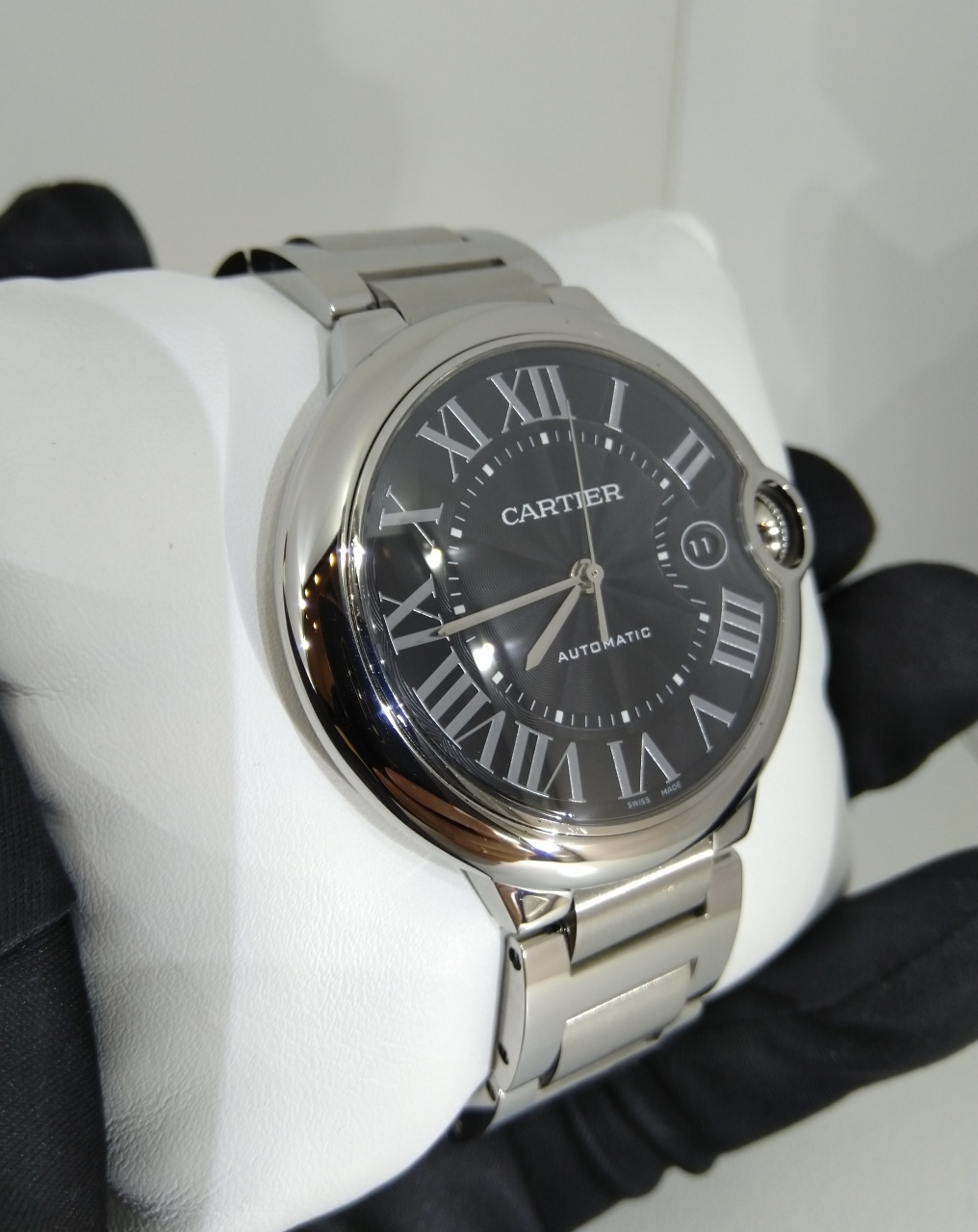 Cartier Ballon Bleu, 42мм, сталь, черный циферблат, браслет