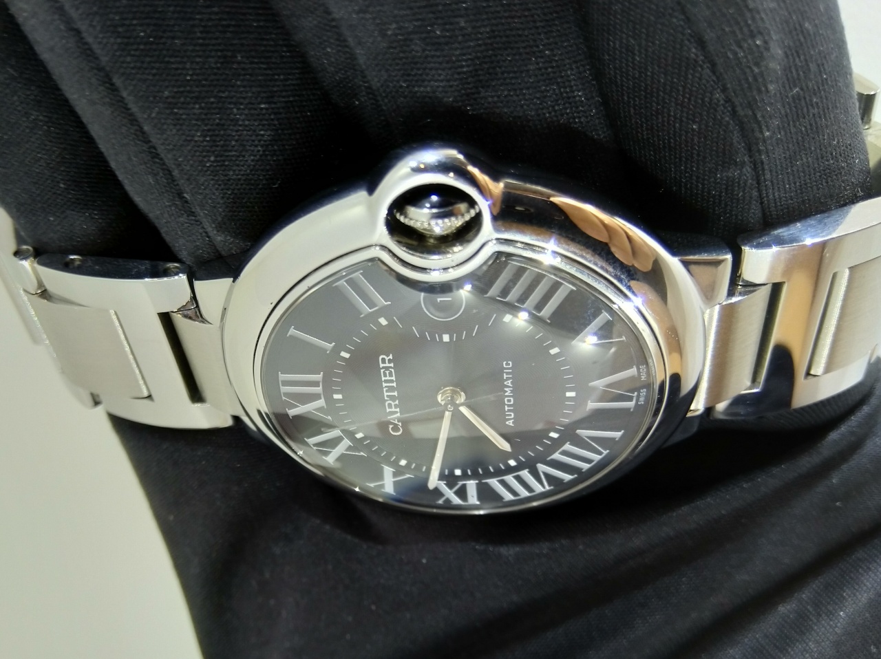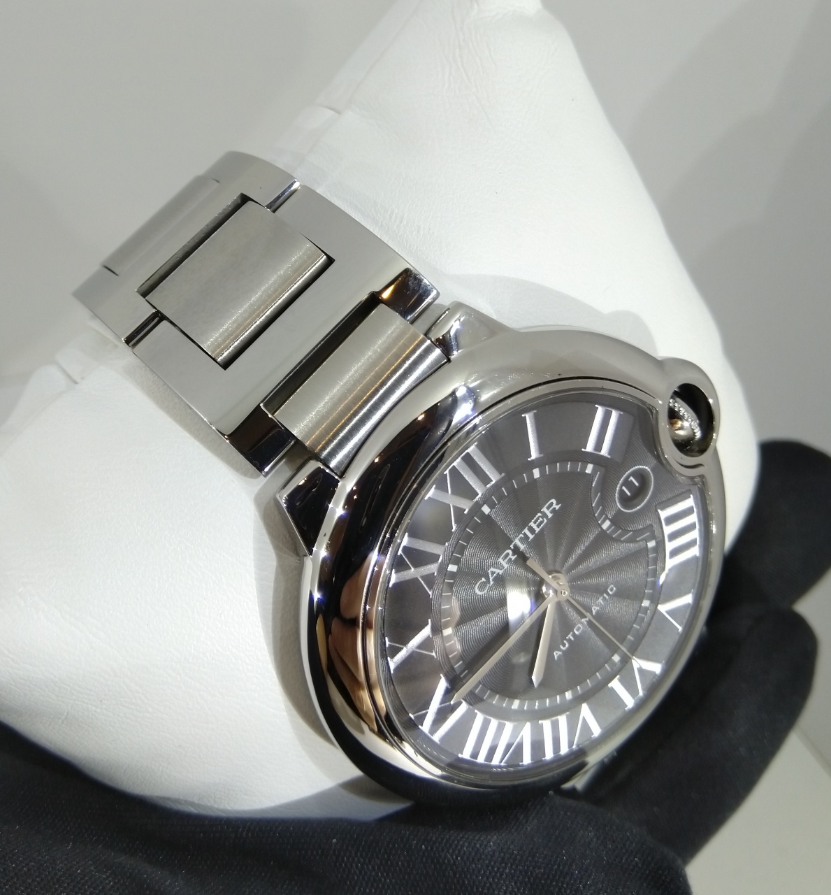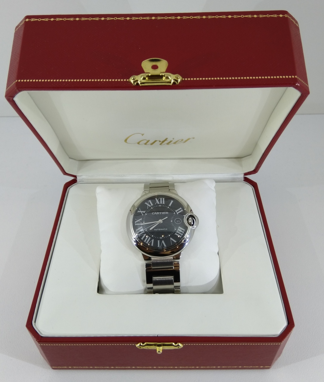 Cartier Ballon Bleu, 42мм, сталь, черный циферблат, браслет