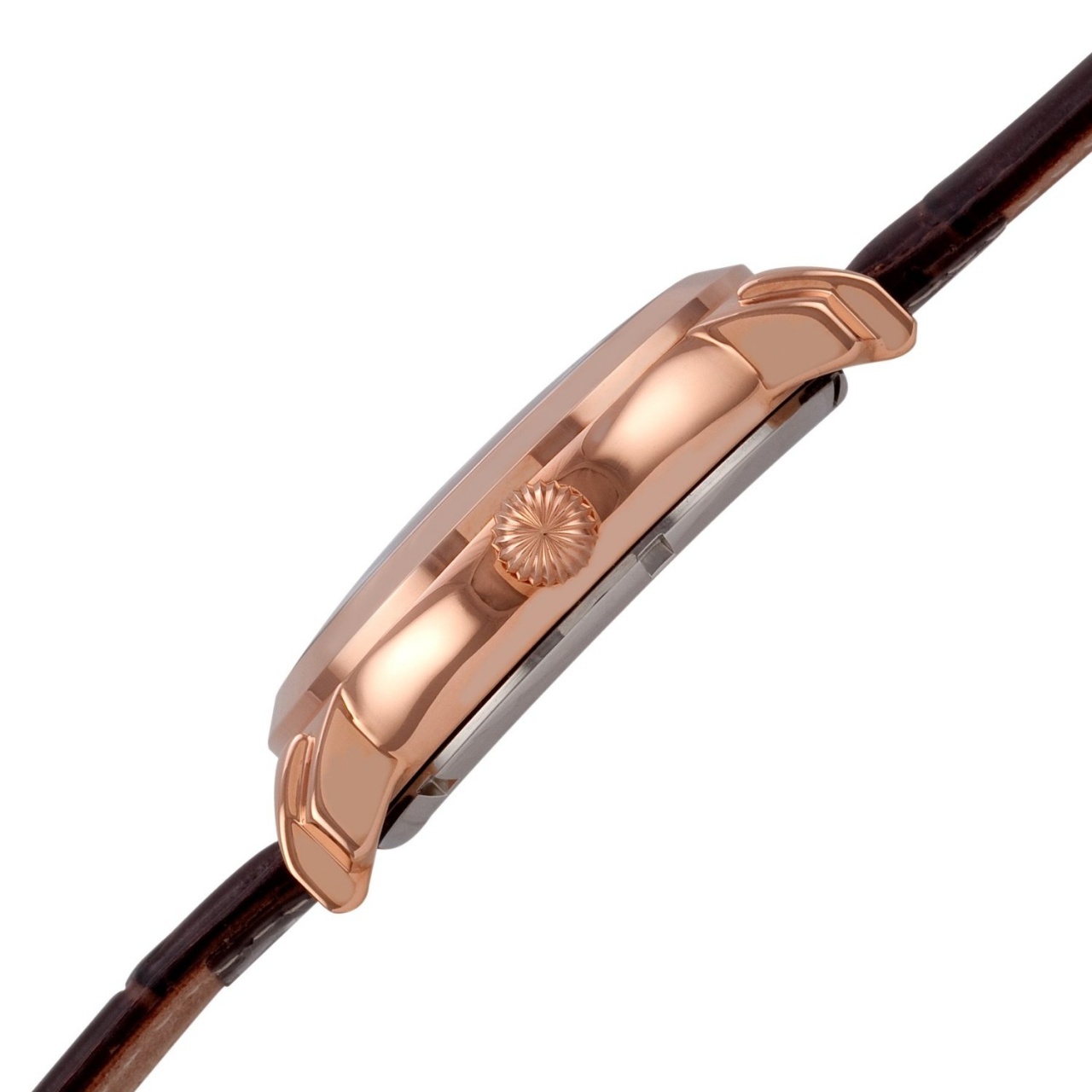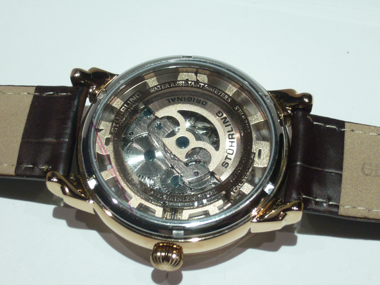 Застежка: пряжка из твердой нержавеющей стали с позолотой розовым золотом 985 пробы с логотипом Stuhrling.