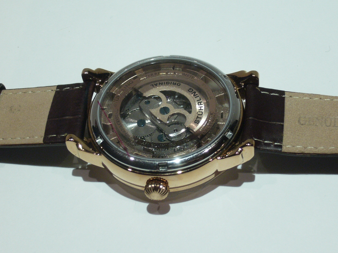 Механизм: Точный калибр ST-90050 20-камней с автоподзаводом (гравированный и украшен воронеными винтами - 21600 полуколебаний/час - 34 часовой запас хода).
