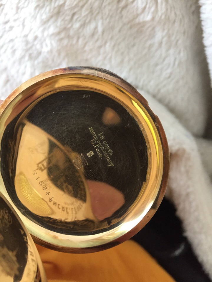 Доброго времени суток! Достались часы, представленные на фото. Обошёл приличное количество антикварных магазинов СПб, но больше 50 000 рублей за них никто не предлагает, мол часы сейчас не продаются и тд. Да, я действительно в подобных вещах не сведущ и в гугле нормальной информации, именно про эти часы откопать не сумел. Но часы золотые, для своего возраста (оценщики сказали, что им около 100 лет) достаточно хорошо сохранились, присутствуют небольшие царапины и потертости, отсутствует стекло и секундная стрелка, на ходу. Искренне прошу оценить их, при возможности и если не трудно - подсказать торговые площадки, где их можно продать. Естественно, на золотые горы не рассчитываю, но полагаю, их фактическая стоимость точно выше % на 30 от того, что мне предлагали.