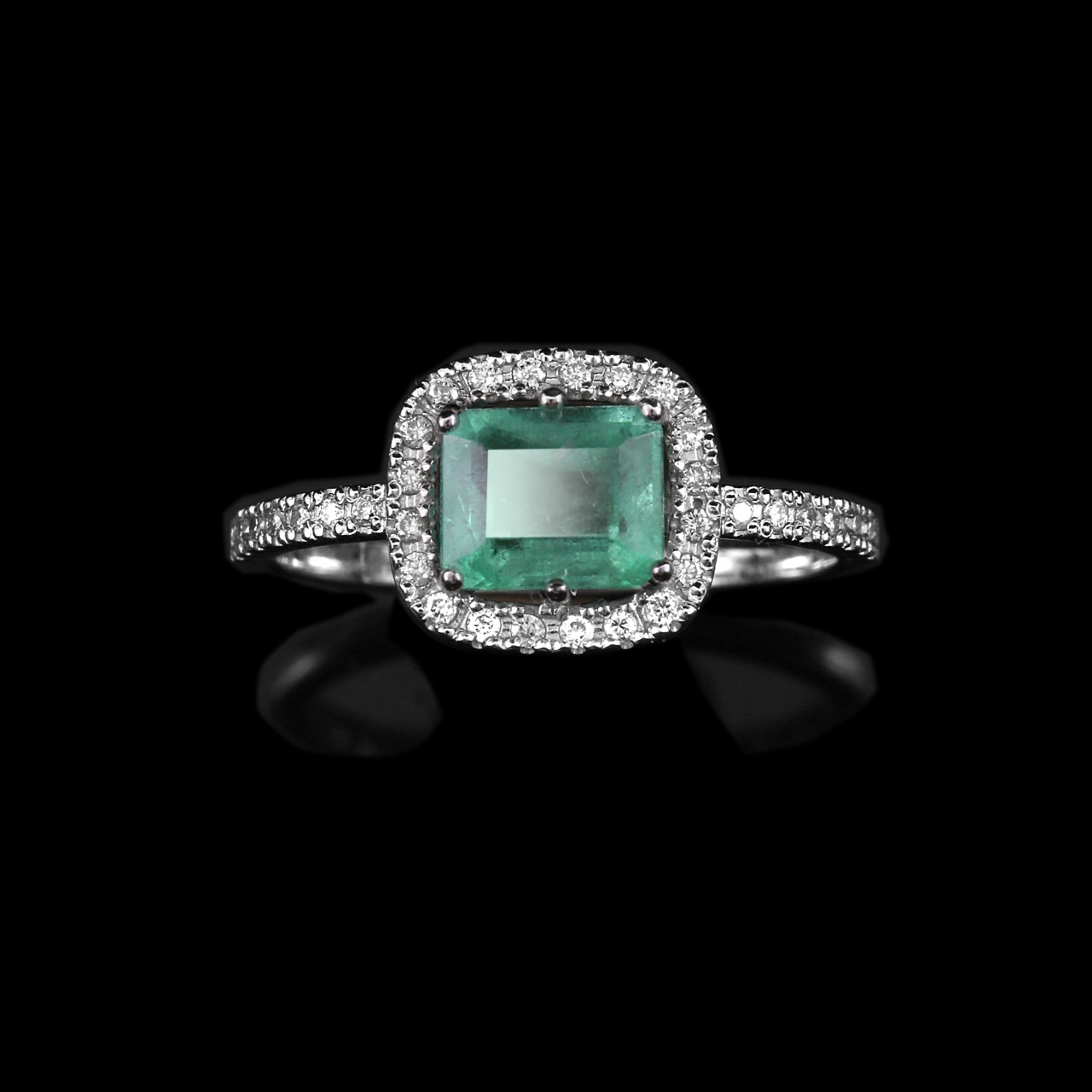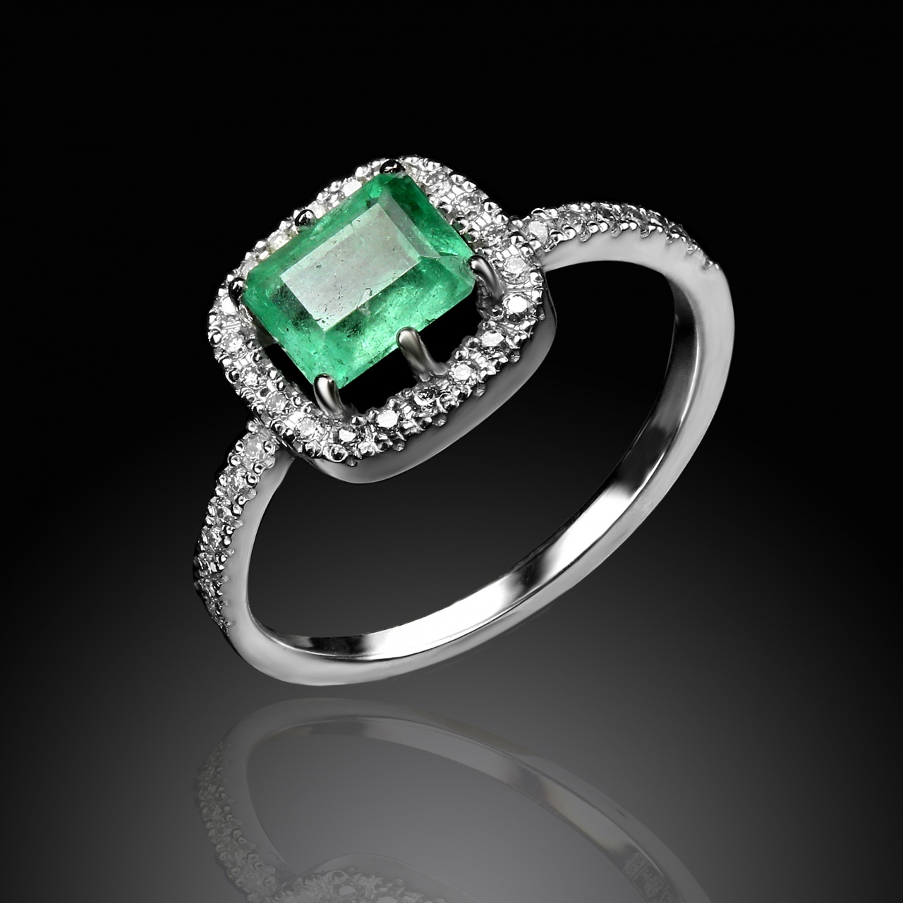 Кольцо из белого золота с изумрудом 0,9 карат и бриллиантами 0,17 карат