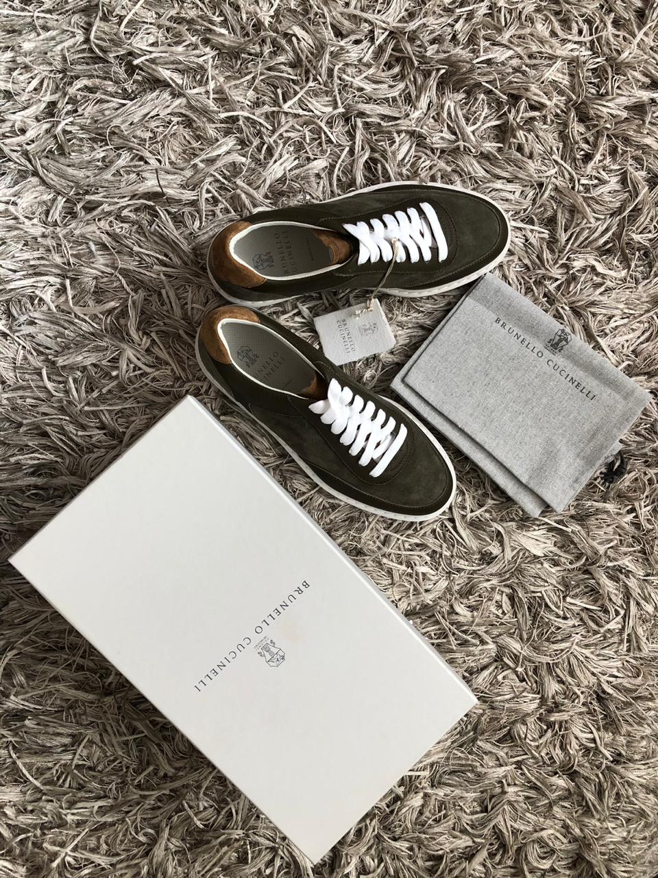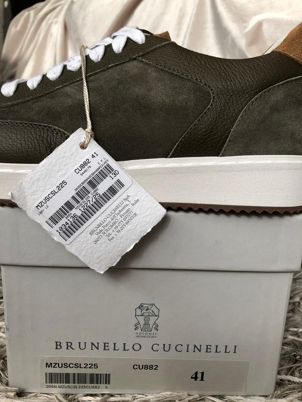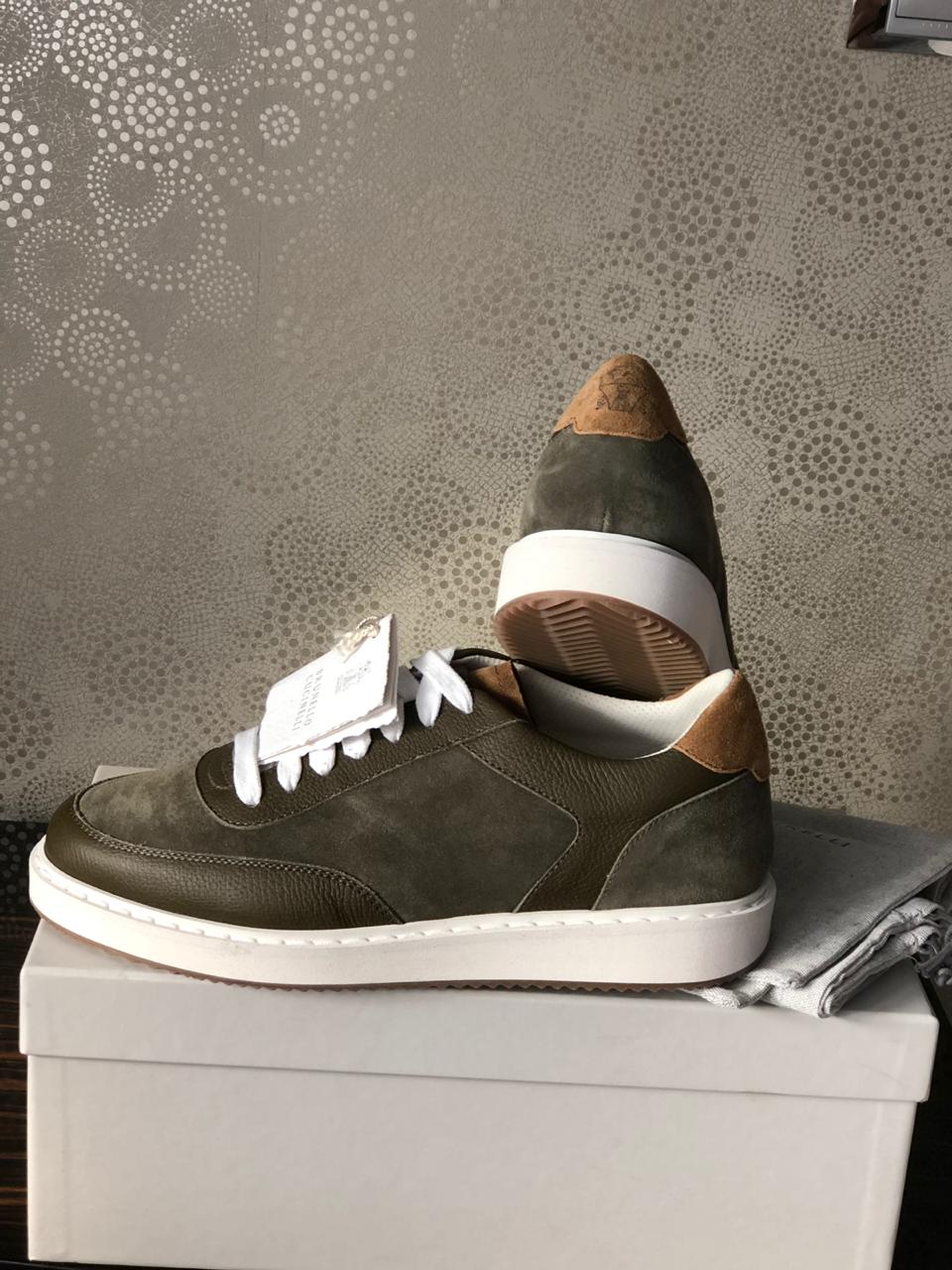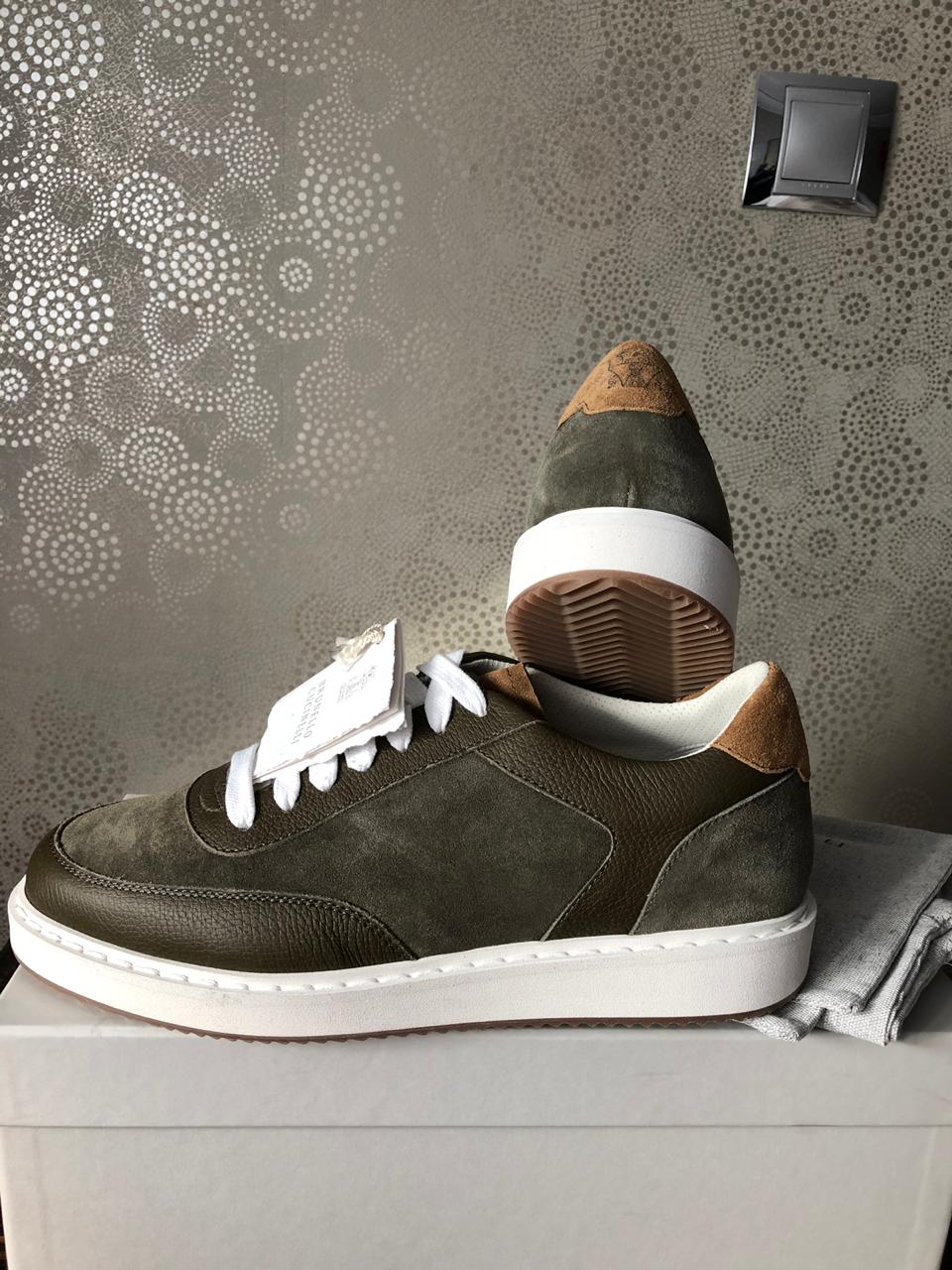BRUNELLO CUCINELLI новые сникеры из телячьей кожи зернистой текстуры и стираной замши (41 размер)