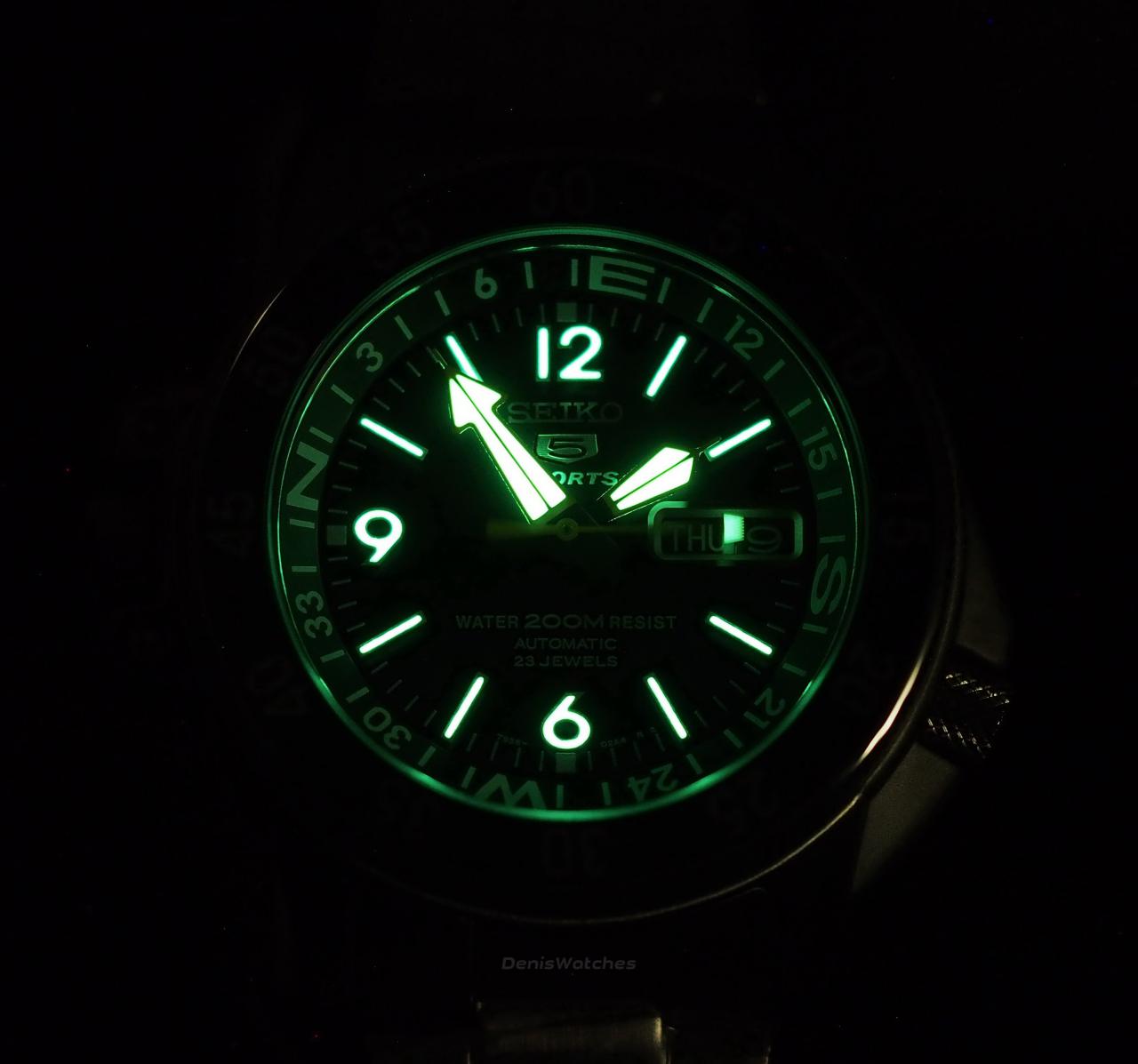 Фирменный яркий люм LumiBrite на стрелках и метках(цифры тоже светятся)