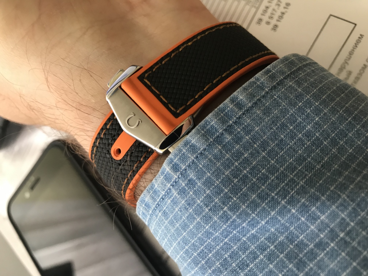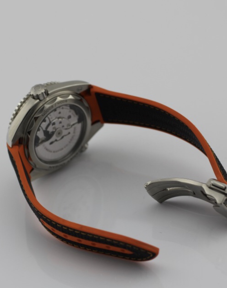 Гелиевый клапан, расположенный на краю корпуса в положении 10 часов. Во внутренней части корпуса бьет коаксиальный калибр 8900 Omega Master, на частоте 25200 п/ч, стоит на 39 драгоценностях, имеет приблизительный запас хода 60 часов. Сертификация METAS испытания водостойкость до 60 Атм, точность и магнитное сопротивление до 15000 Гс. Часы укомплектованы каучуковым черным ремешком с раскладной титановой застежкой.
