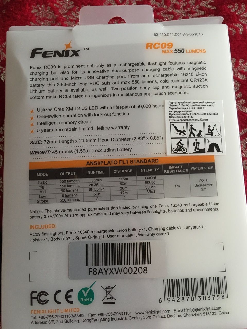 Выпуск фонарей Fenix RC09Ti лимитирован, а потому они сразу же после появления привлекли к себе повышенный интерес со стороны покупателей. Фонарь работает с новым диодом Cree выпущенным под индексом XP-L HI, который демонстрирует высокую производительность при миниатюрных размерах. Потенциал службы такого диода насчитывает 50 тысяч часов. Максимально возможная для него яркость в этом фонаре составляет 550 люмен.