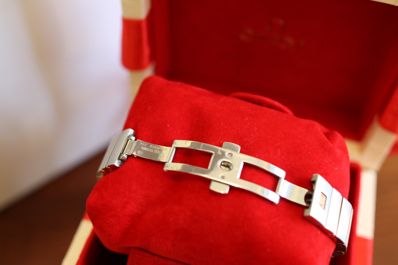 Очень аккуратная женская Omega c великолепным жемчужным циферблатом , следы носки минимальны!