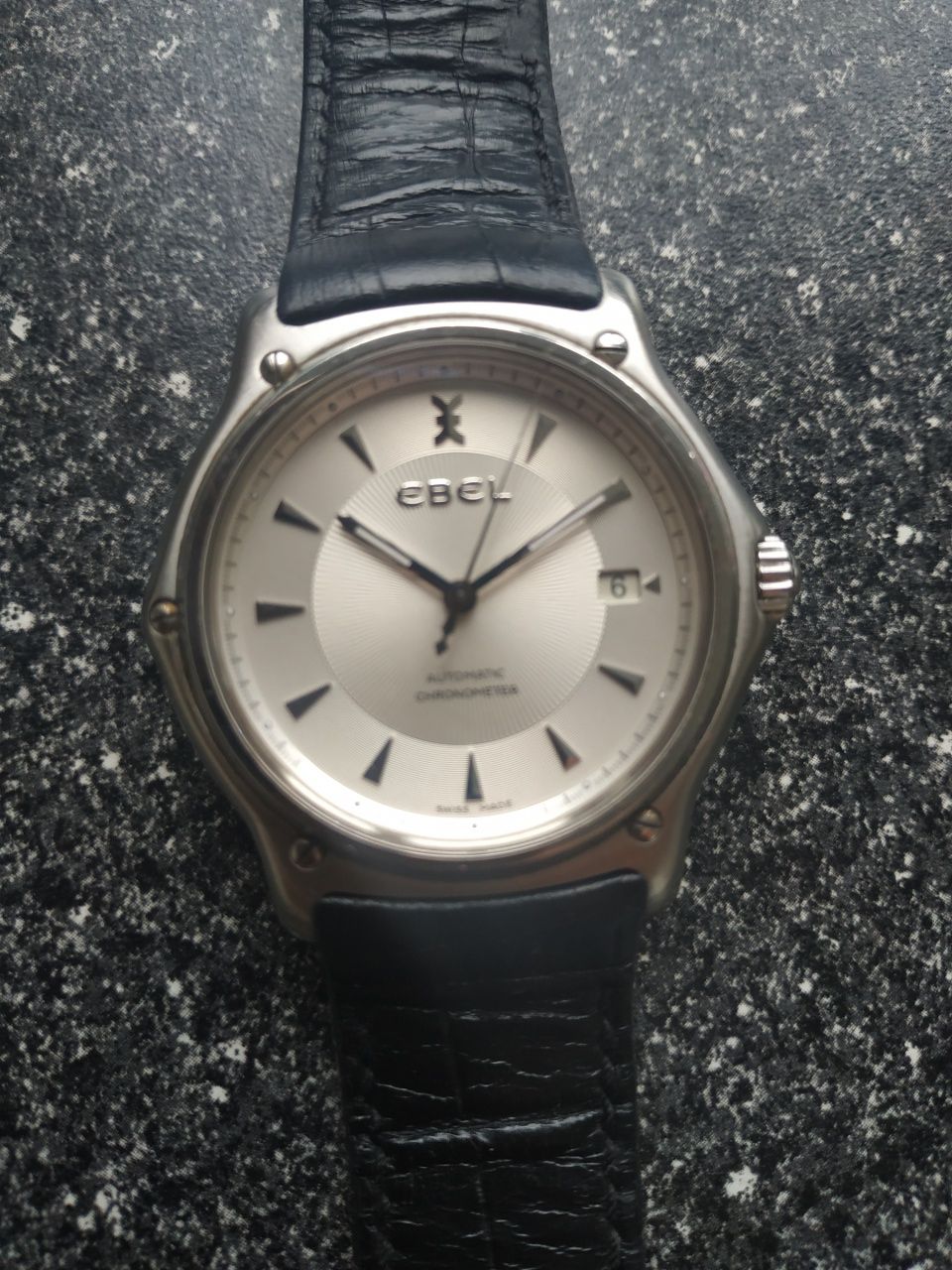 Продаю EBEL 1911 на хронометрированном механизме. Часы в отличном состоянии, за исключением, нет родной бакли. Ремешок им шил отдельно, в 9000 тысяч обошелся). Точность хода отличная, носил каждый день 7 месяцев с сентября по май, убежали всего на 4 минуты!) В репассаже не нуждаются.