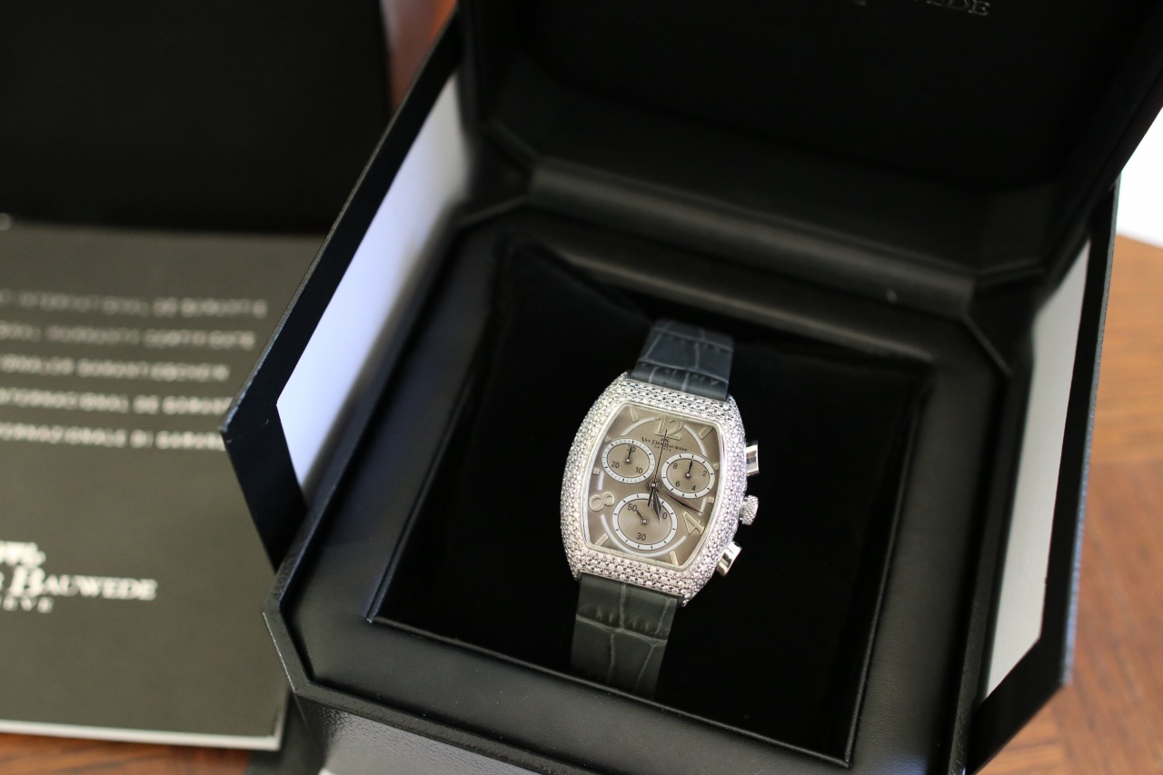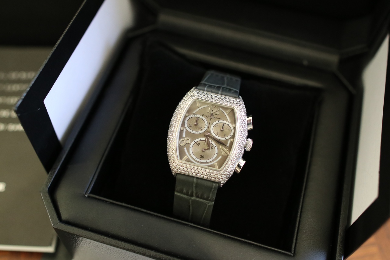 Прекрасный Van Der Bauwede с полным паве в 300 бриллиантов и общим весом в 3 карата! Часы после полировки , стекло без сколов и царапин! Новый ремень! Отличный вариант на подарок так как дата не заполнена в документах!