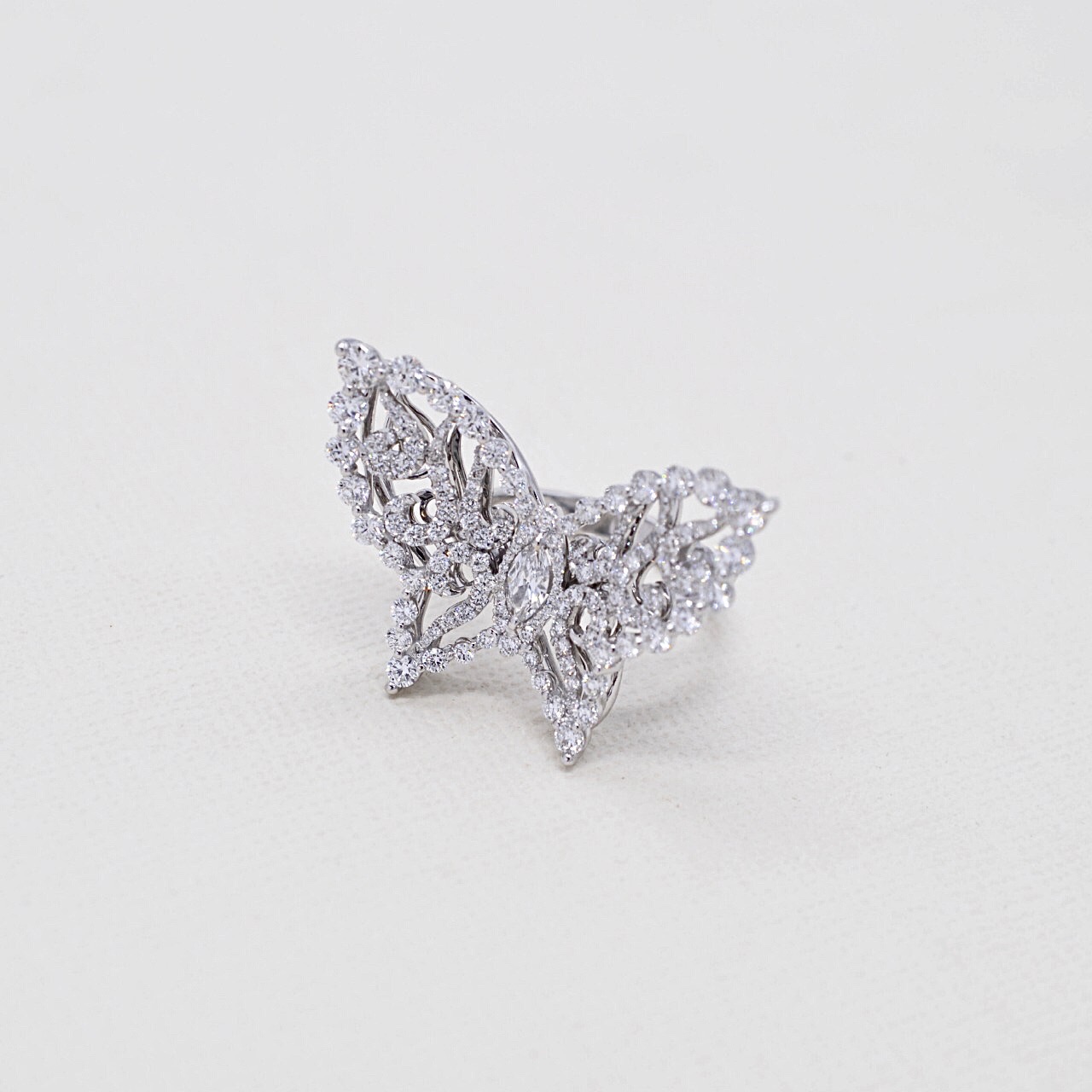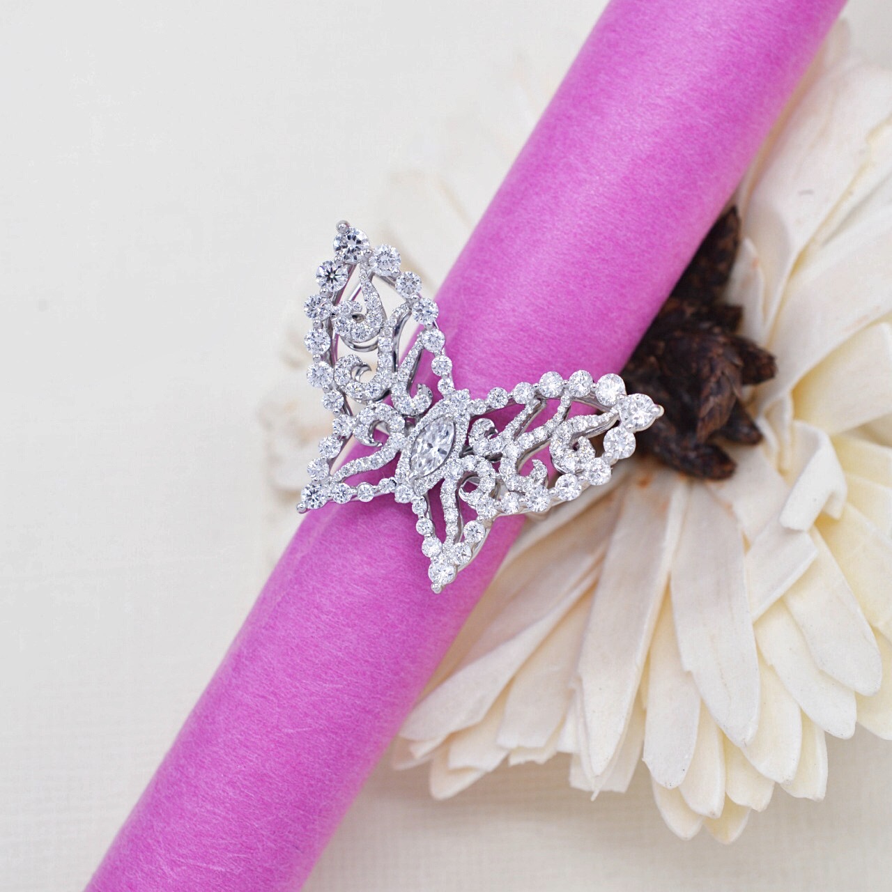 Нежное кольцо из белого золота 750 пробы, дополненное бриллиантами высочайшего качества