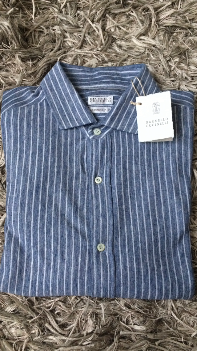 BRUNELLO CUCINELLI новая льняная рубашка в полоску (L размер)