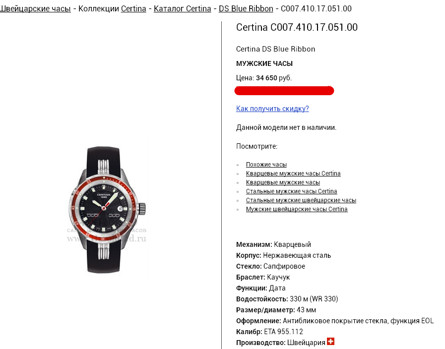 Certina DS Blue Ribbon C007-410-17-051-00 ЧЕРНЫЙ ЦИФЕРБЛАТ / КРАСНЫЙ БЕЗЕЛЬ / КАУЧУК - Часовой форум Watch.ru