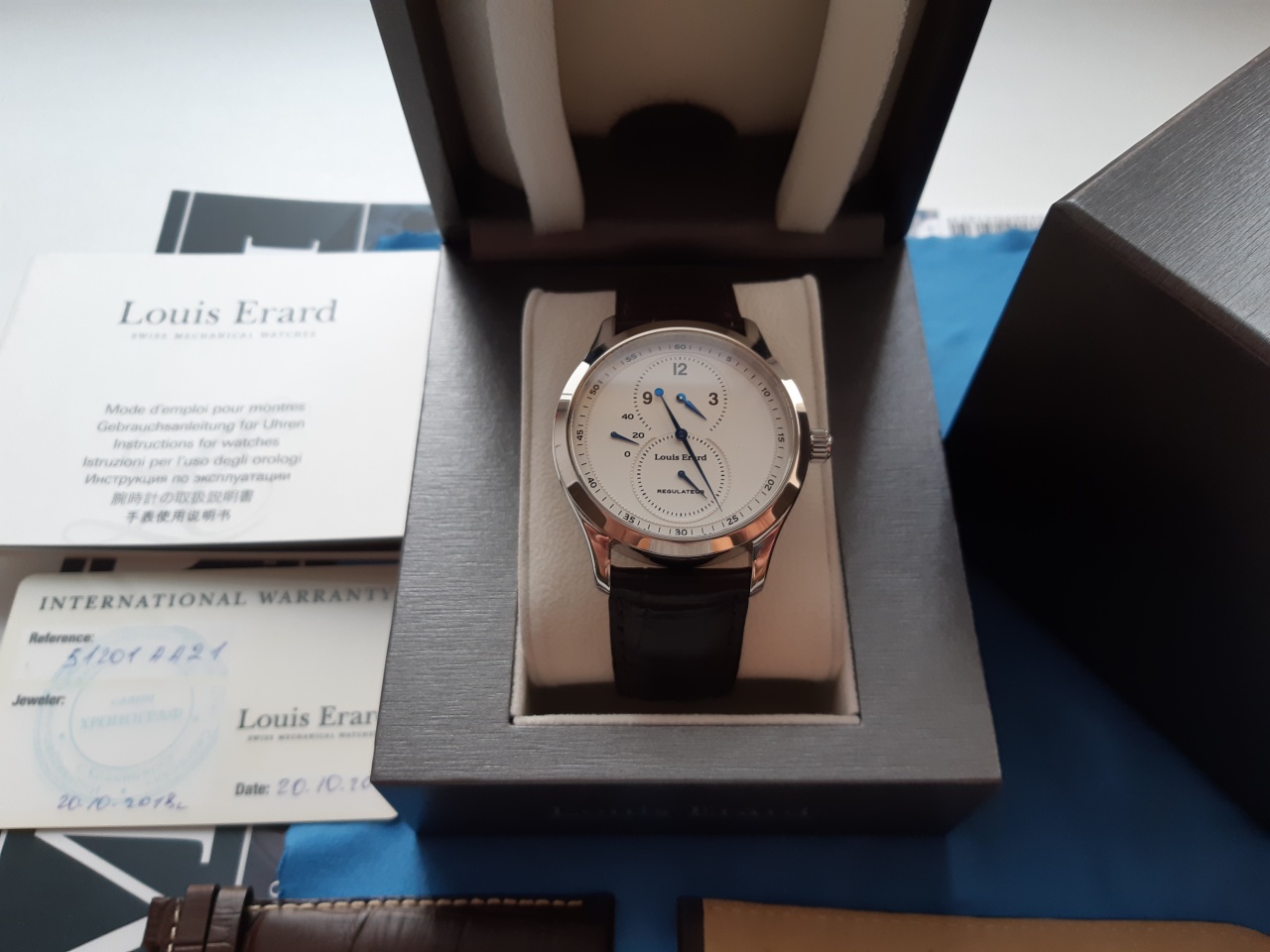 Продаю шикарные , редчайшие, очень крутые часы Louis Erard 1931 Regulator. Часы куплены в магазине в ноябре 2018 года, то есть практически не носились, состояние идеальное, на полной официальной гарантии, что огромная редкость для такой модели! Надежный и простой калибр Peseux 7001, но эксклюзивно доработанный Louis erard. Этот регулятор их фирменная разработка. Очень полезная и интересная функция - запас хода. Полный комплект: часы, коробки, документы, гарантия! В подарок второй оригинальный ремешок. Цена такого регулятора на этом калибре сейчас составляет порядка 180 000 рублей!!!