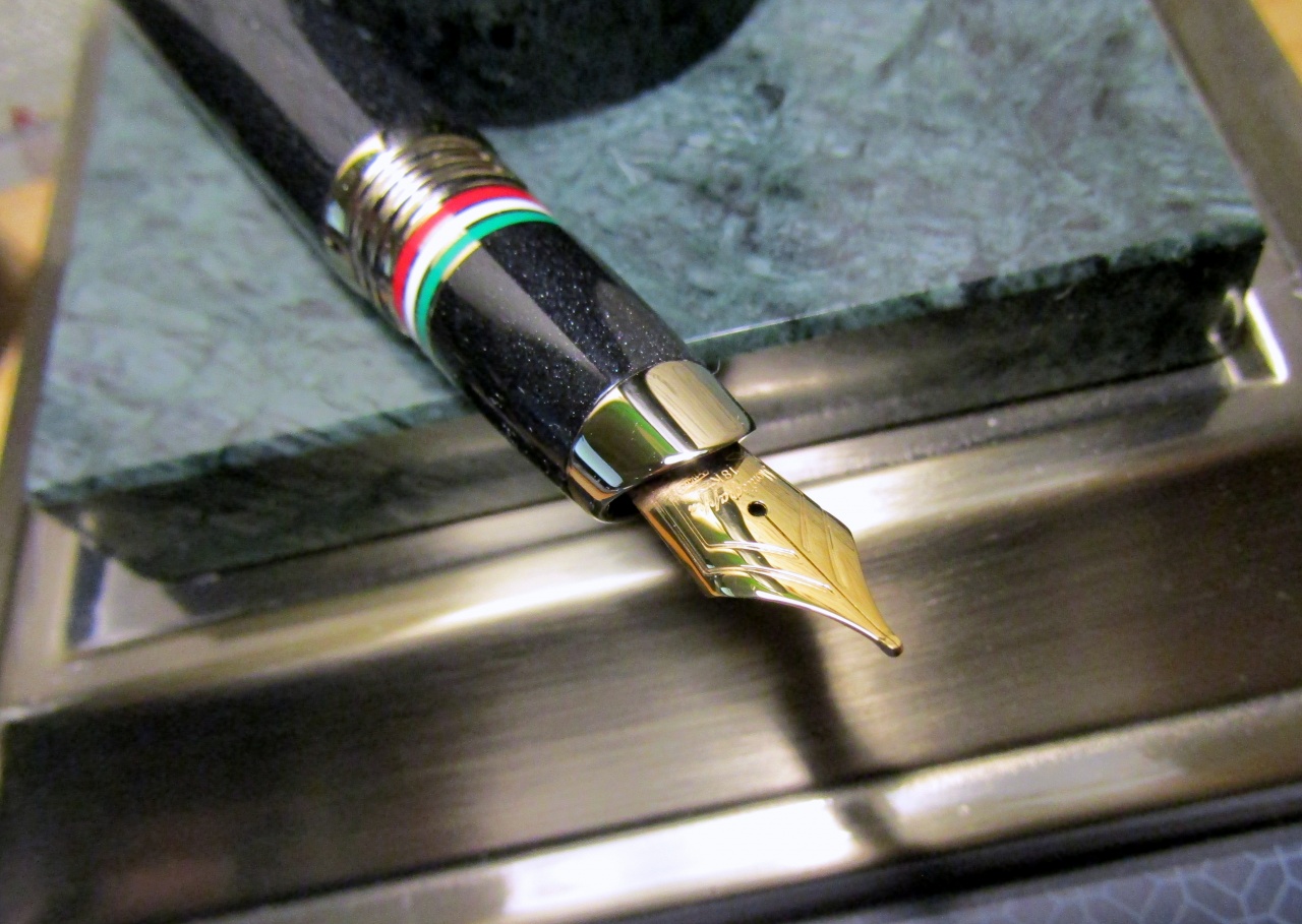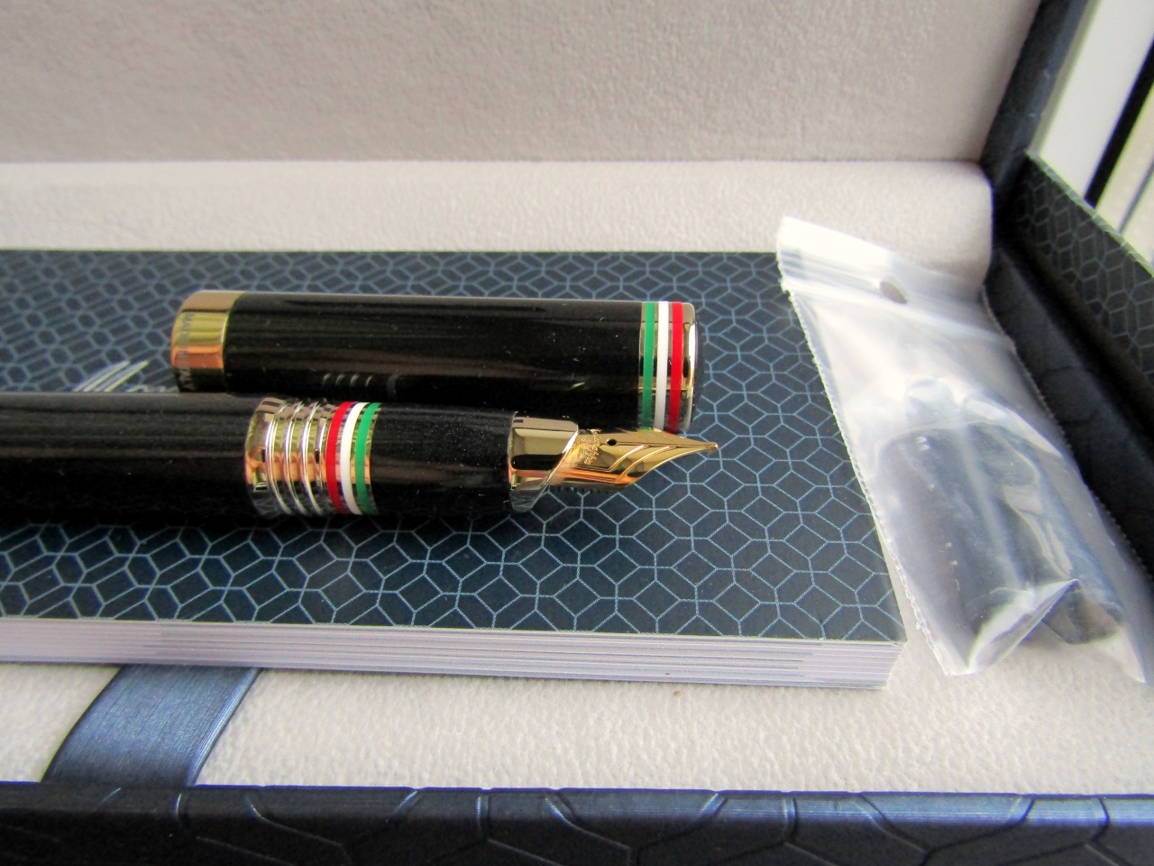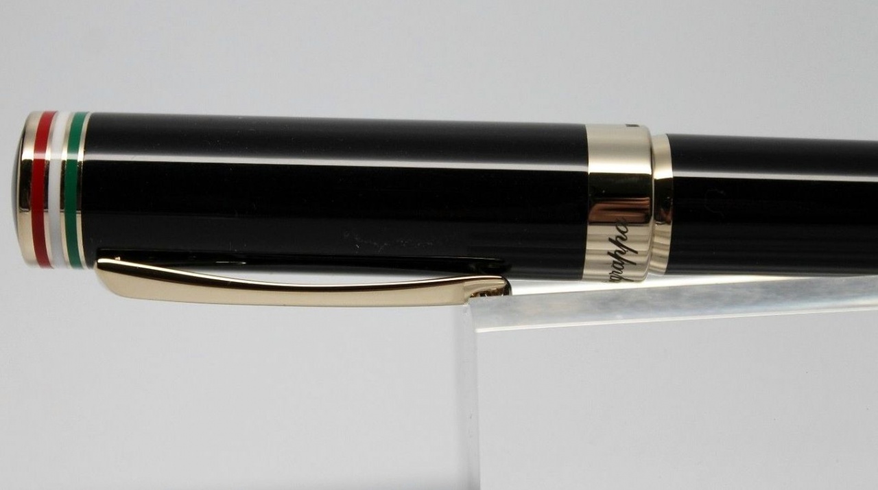 Перо из серии «Italia Black», посвященной родине торговой марки,подтверждением этому является декор в виде итальянского флага на корпусе и колпачке.Пишущий инструмент в элегантном черном цвете выполнен из драгоценной смолы в минималистическом дизайне.Благодаря наличию надежного зажима ручку можно с легкостью закрепить на кармане пиджака или рубашки, а при необходимости также быстро открепить ее.