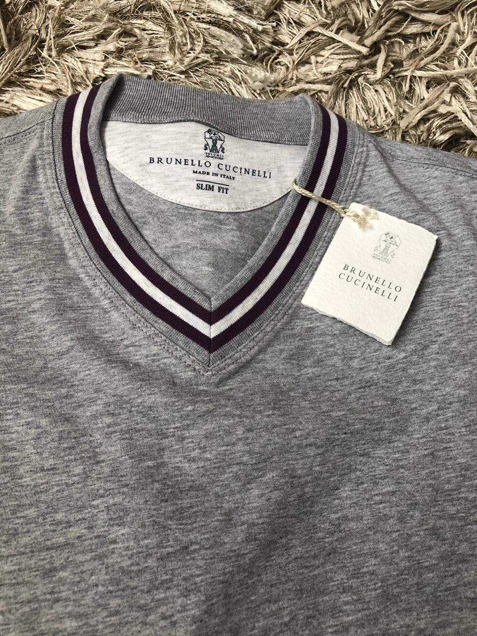 BRUNELLO CUCINELLI новая футболка Tennis Stripes c клинообразным вырезом (M/50 размер)