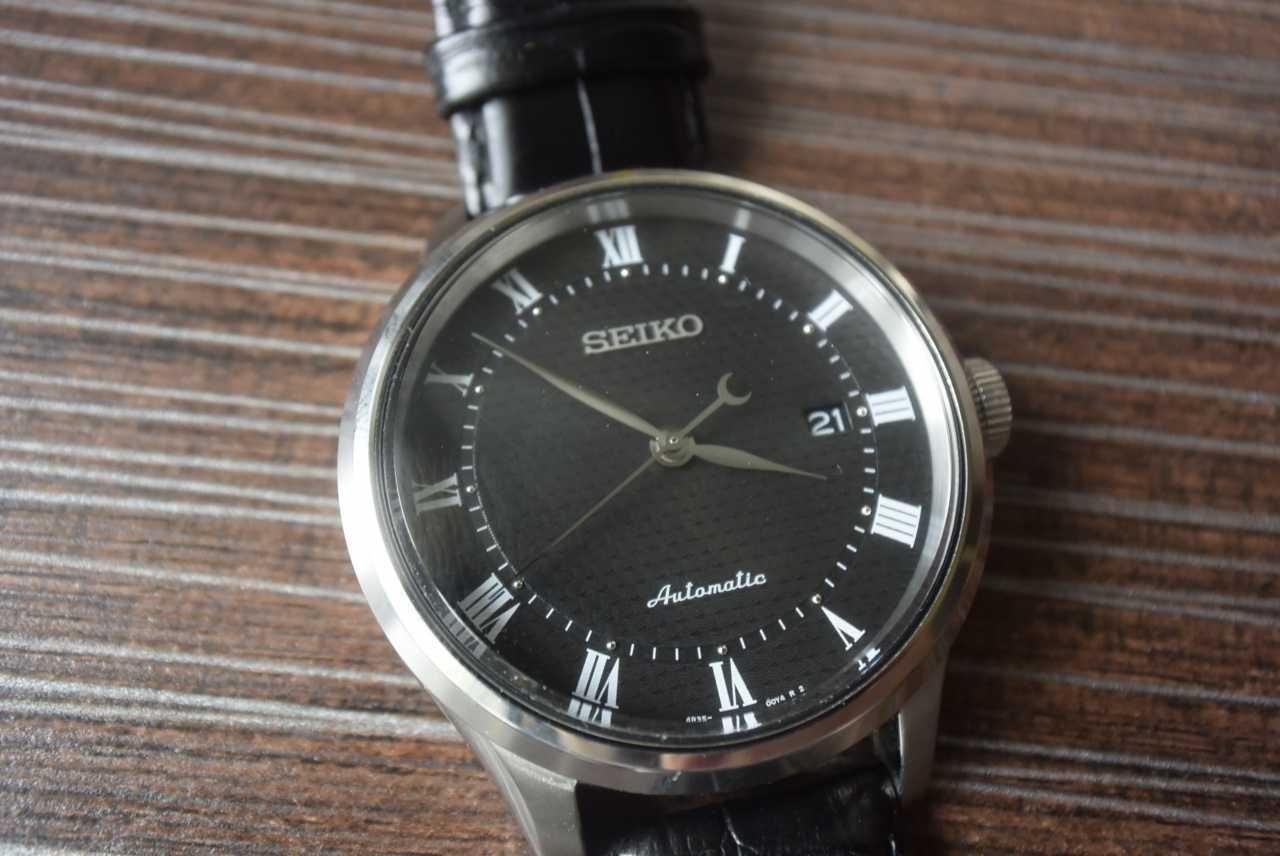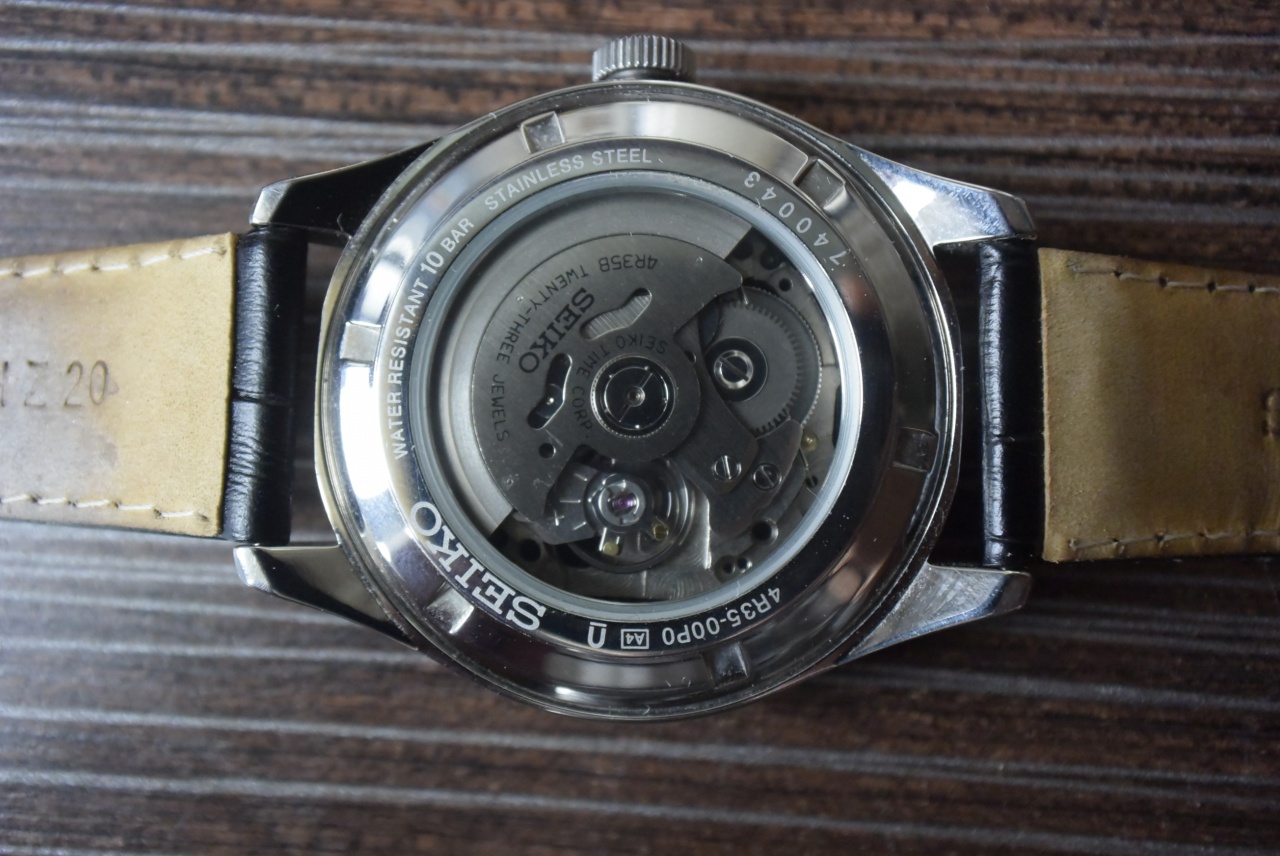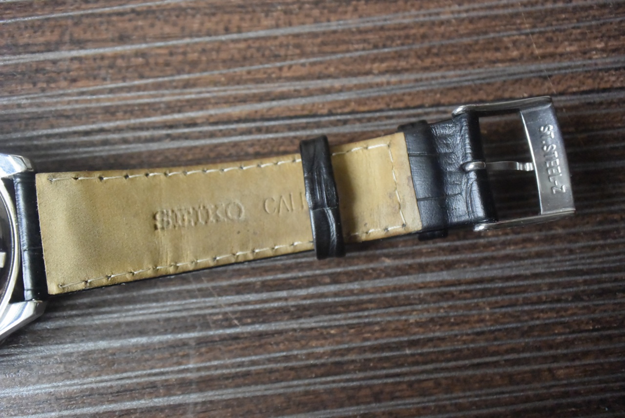 Часы SEIKO,механика с автоподзаводом,23 камня,запас хода 41 час,стекло Hardlex,корпус сталь,защита от воды 100 м,ремешок кожаный,ширина корпуса 42 мм,толщина 13 мм.На гарантии.Часы в отличном состоянии,из минусов:ремешок имеет следы носки,на маховике царапинка,думаю заводской косяк при сборке.