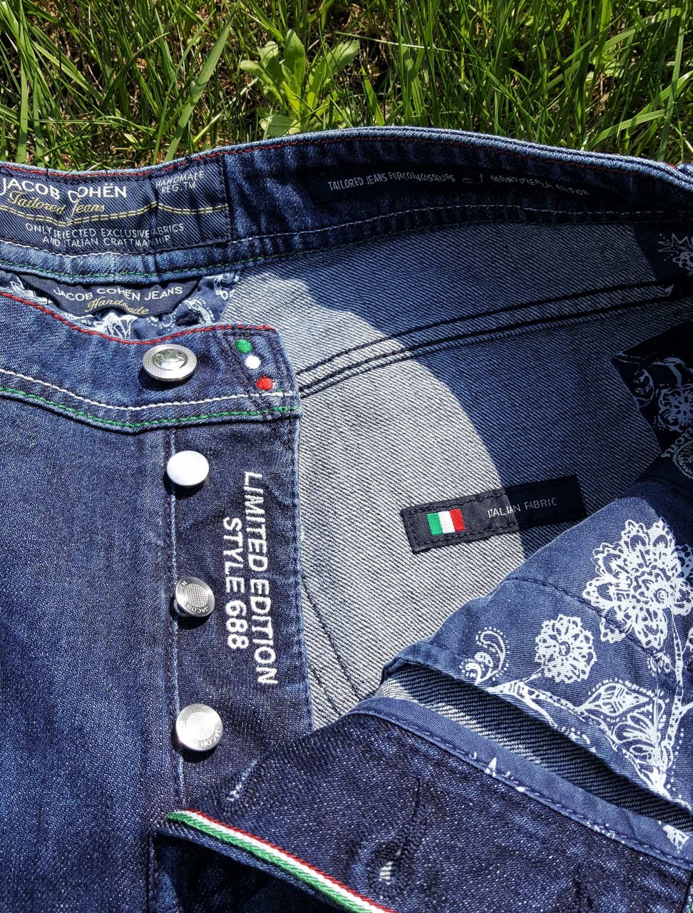 Модель: 688 LTD, прямого кроя, застёгиваются на фирменные пуговицы из серебра с логотипом Jасоb Соhеn.