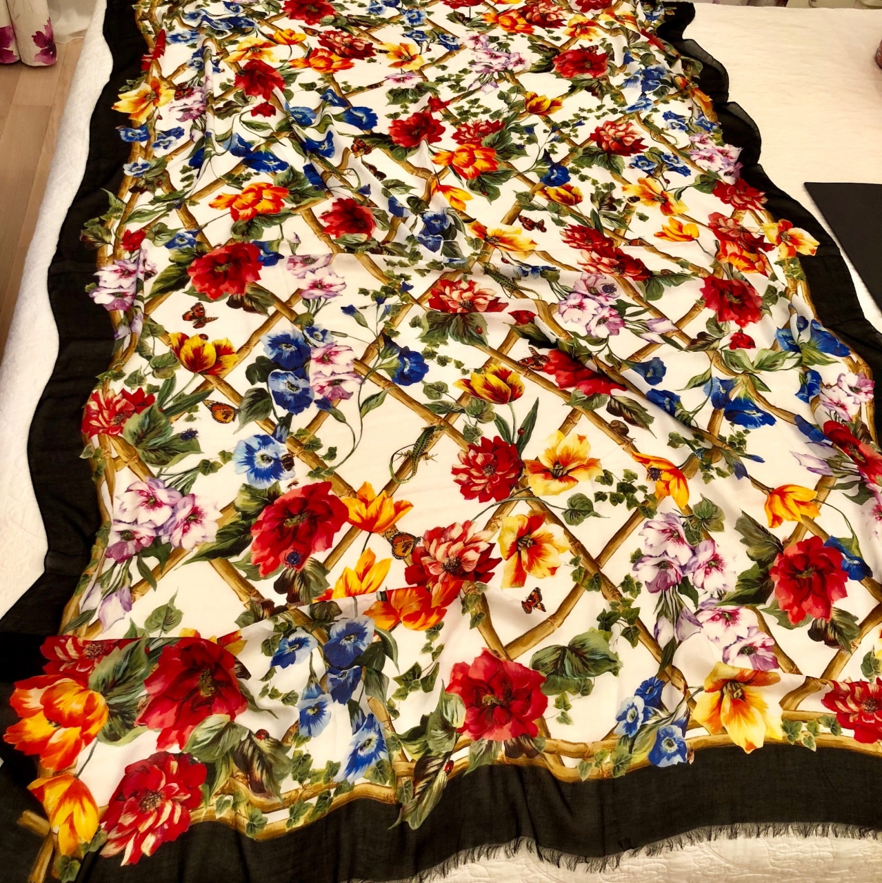 Палантин Dolce & Gabbana. Теплый, КАШЕМИР С ВИСКОЗОЙ Расцветка: яркие цветы и черный кант