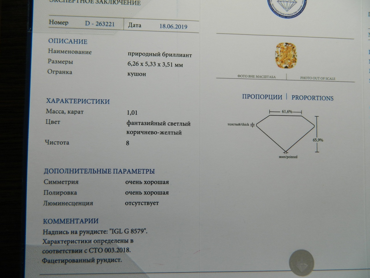Цвет фантазийный коричнево-жёлтый. Чистота 8.