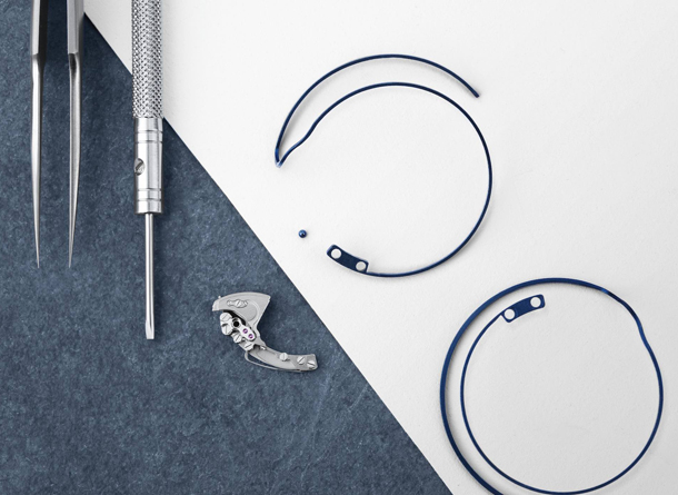Основание из твердого белого золота сначала украшено гильошированием, а затем на циферблате размещены индикаторы календаря. Остальные пространства заполнены полупрозрачной эмалью. Затем эмаль полируется, в результате чего циферблат сочетает в себе глубину и глянцевую, полупрозрачную поверхность. Обе версии часов поставляются на синем ремешке из кожи аллигатора.